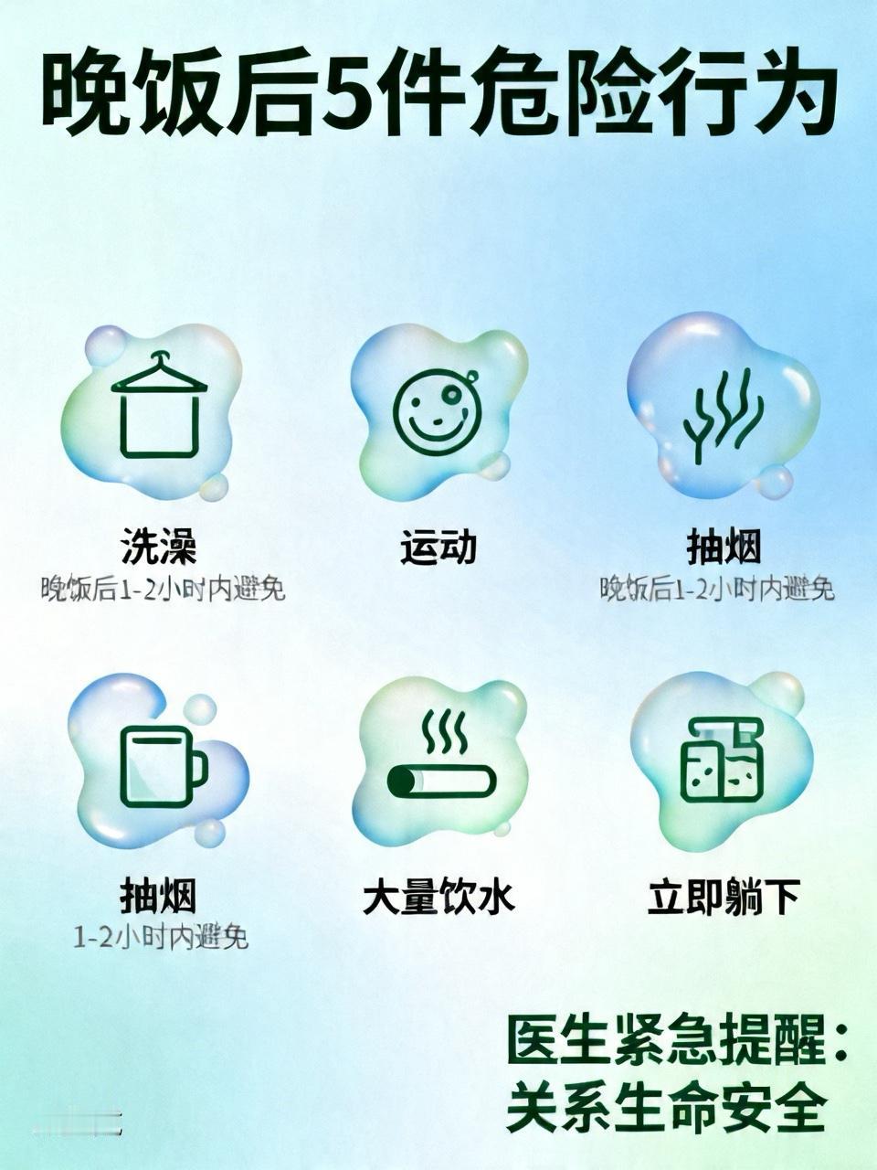 答案藏在晚饭后的那1-2小时内。吃完饭,身体正全力以赴消化,宛如工厂加班赶工。如果此时你急着洗澡、运动、抽烟,身体就得“分兵把守”,心脏供血被分流,风险骤增!