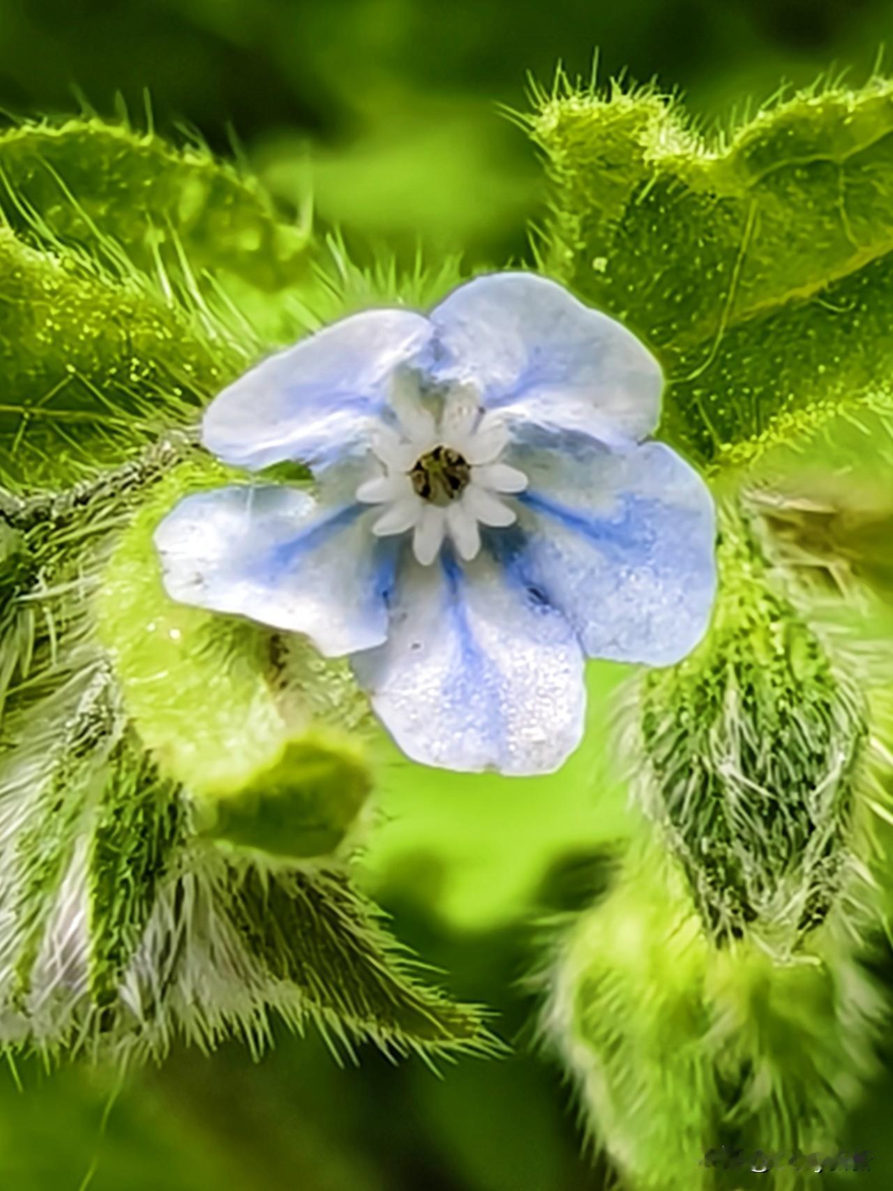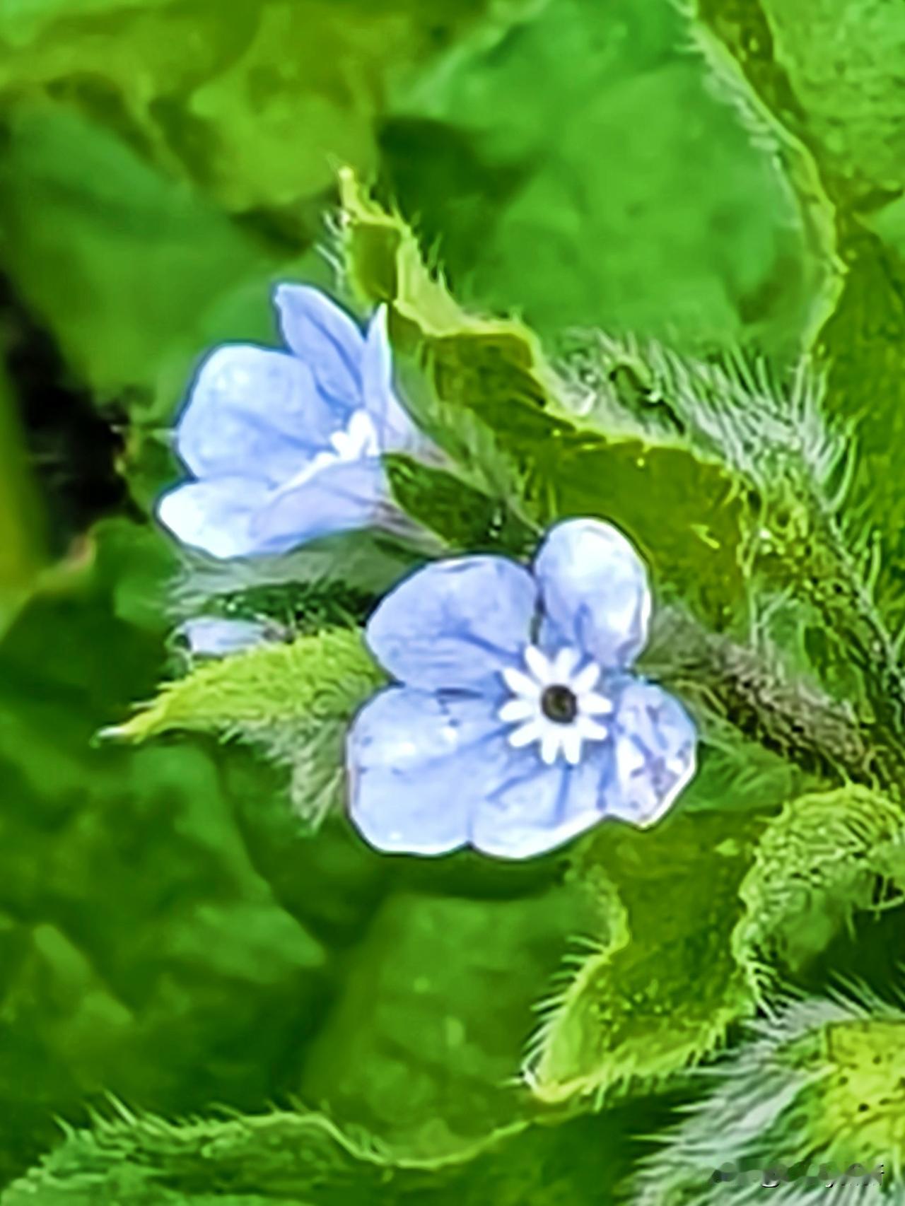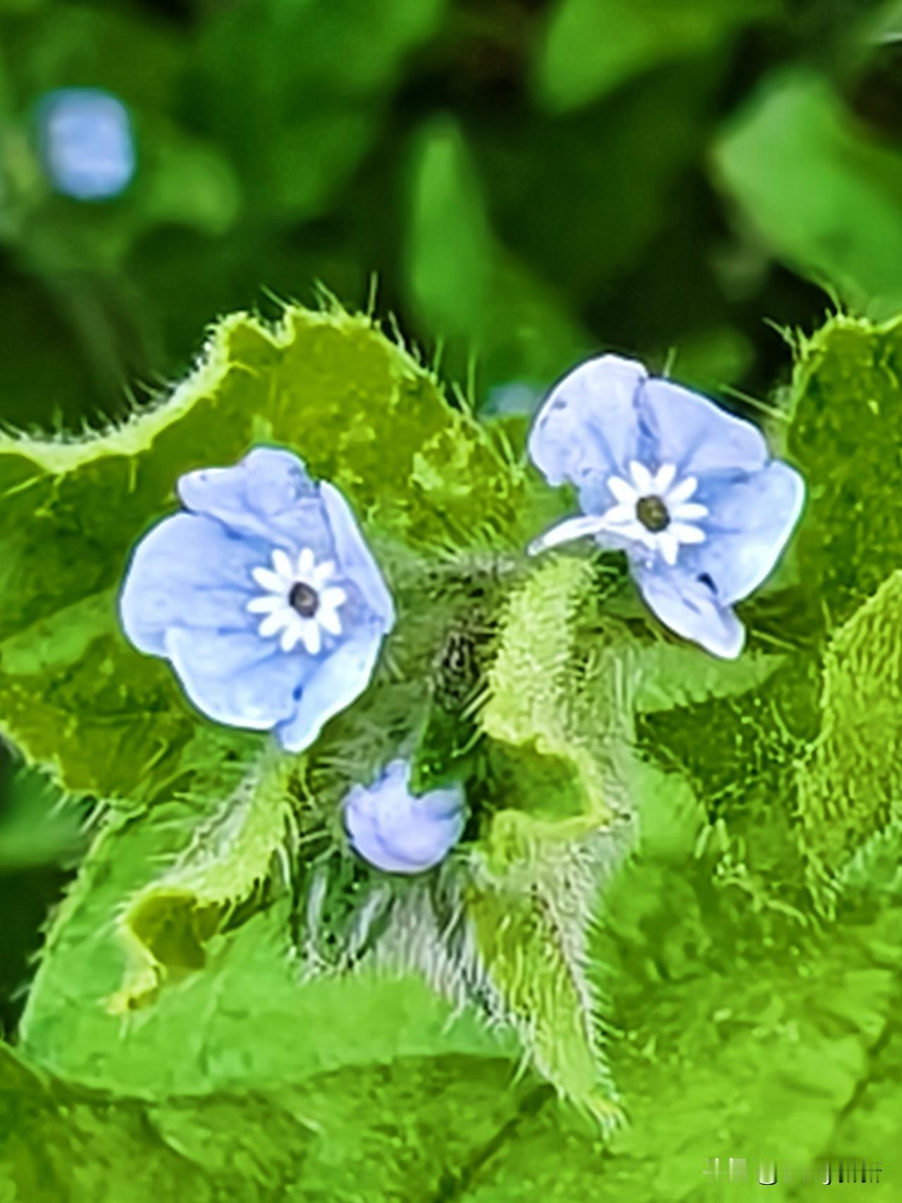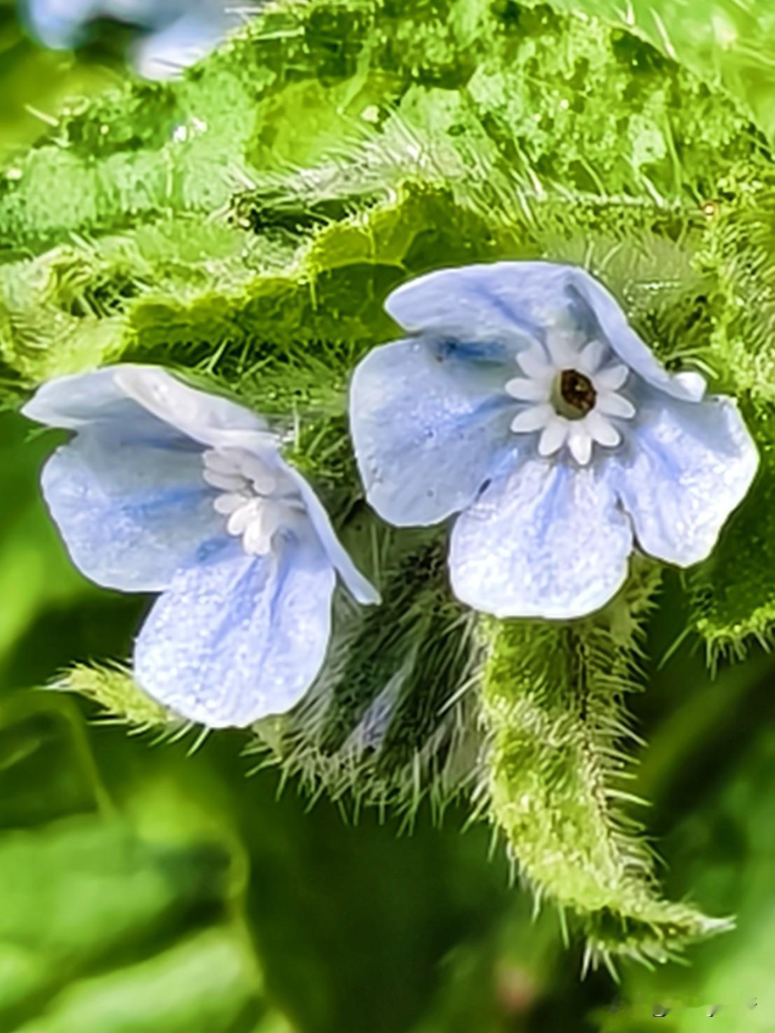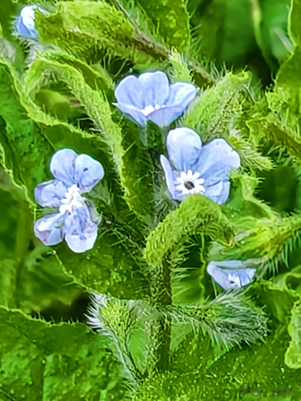 七律·斑种草 野径荒坡自在生,纤枝密毛缀轻英。 淡蓝碎蕊凝朝露,浅碧柔条沐晓风。
