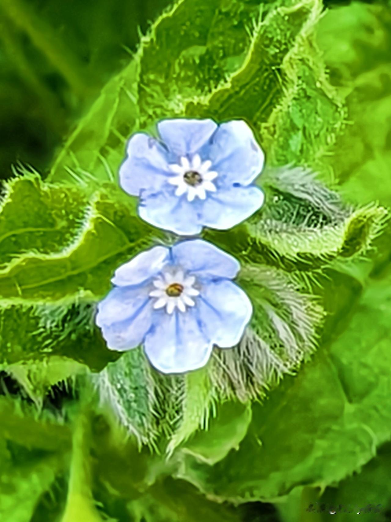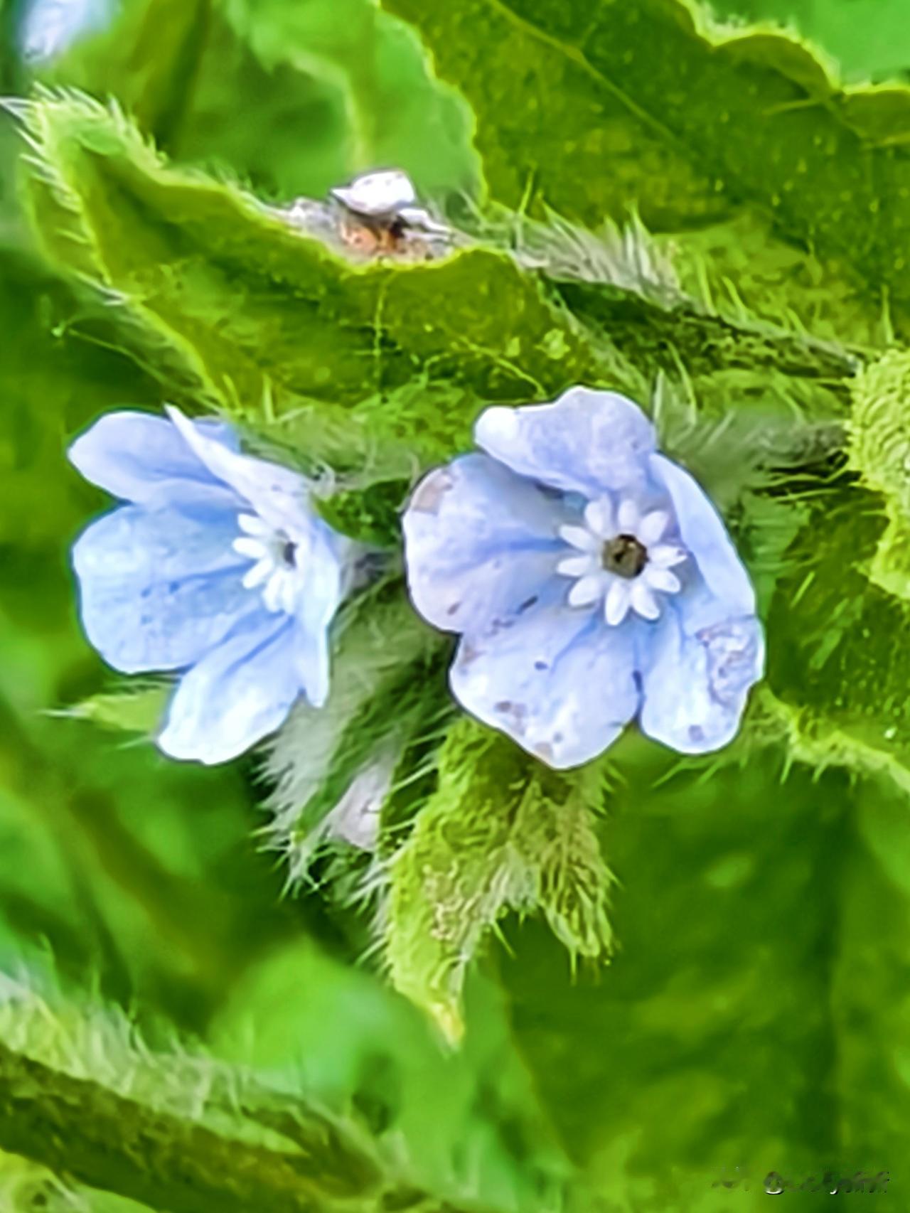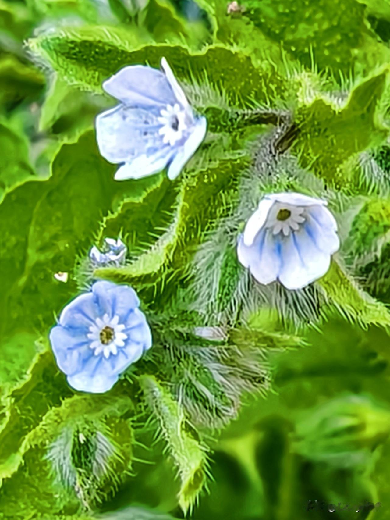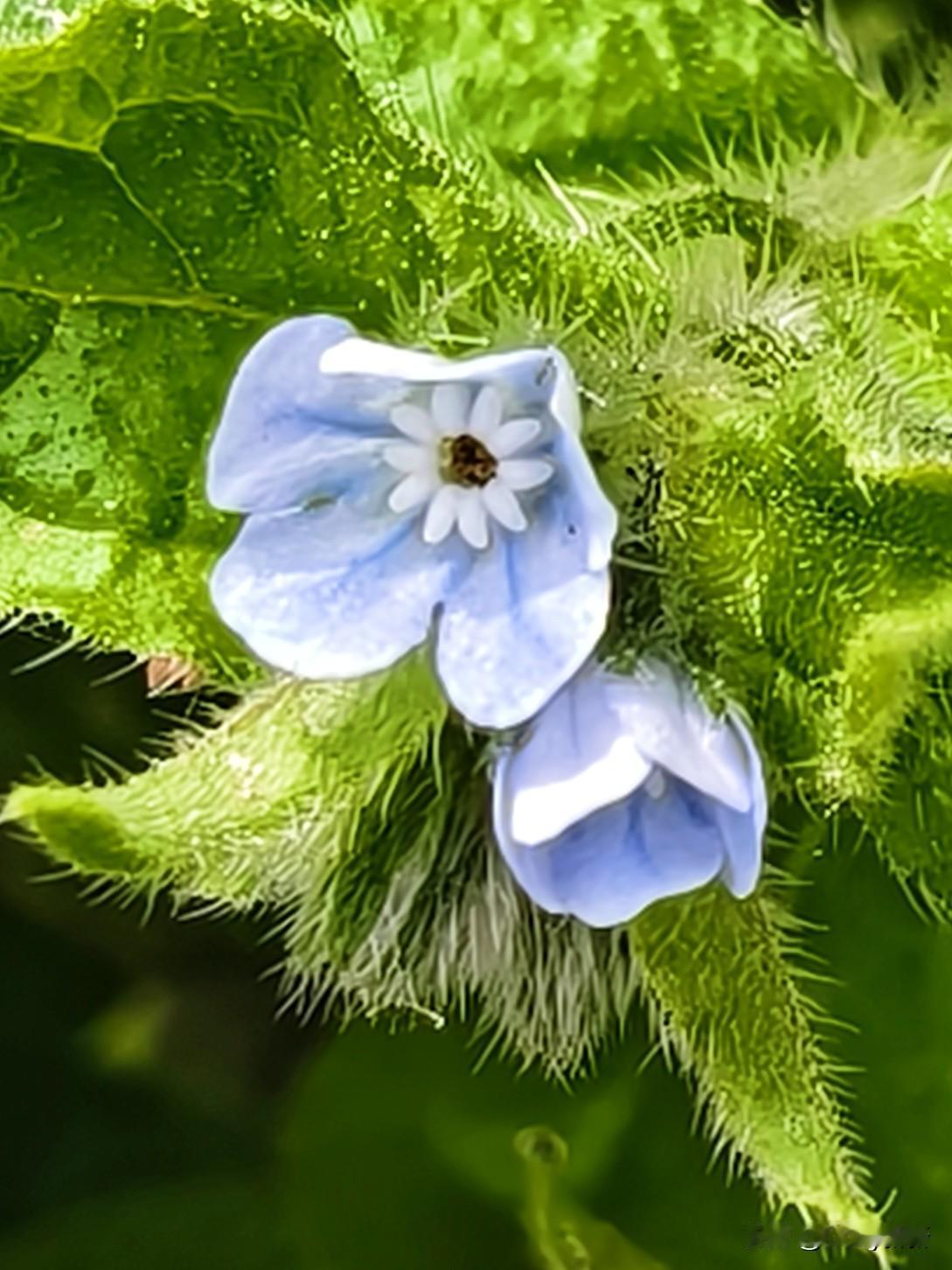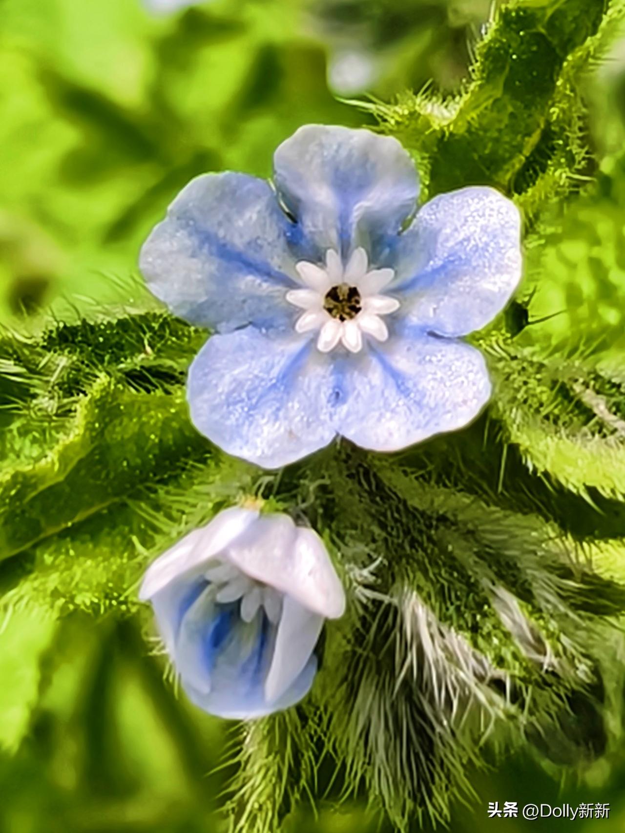 七律·斑种草 野径荒坡自在生,纤枝密毛缀轻英。 淡蓝碎蕊凝朝露,浅碧柔条沐晓风。