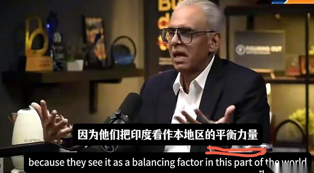 第二个观点更绝。他说,美国乐于见到印度崛起,用来平衡我们。