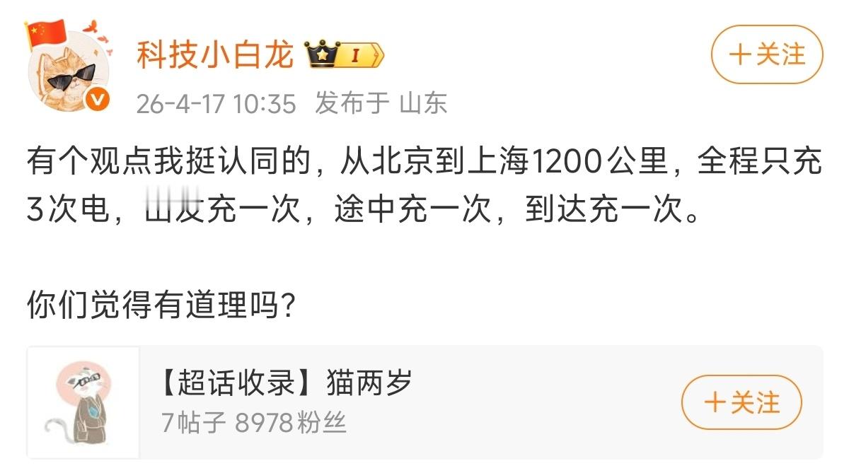 通过典型的大城市长途距离直播(北京-上海1300km),证明电车顶着限速跨城长途也不会有明显的续航焦虑,因为同样整备情况油车大概率中途也要加油,电车可以放心购买,不需要担心长途。