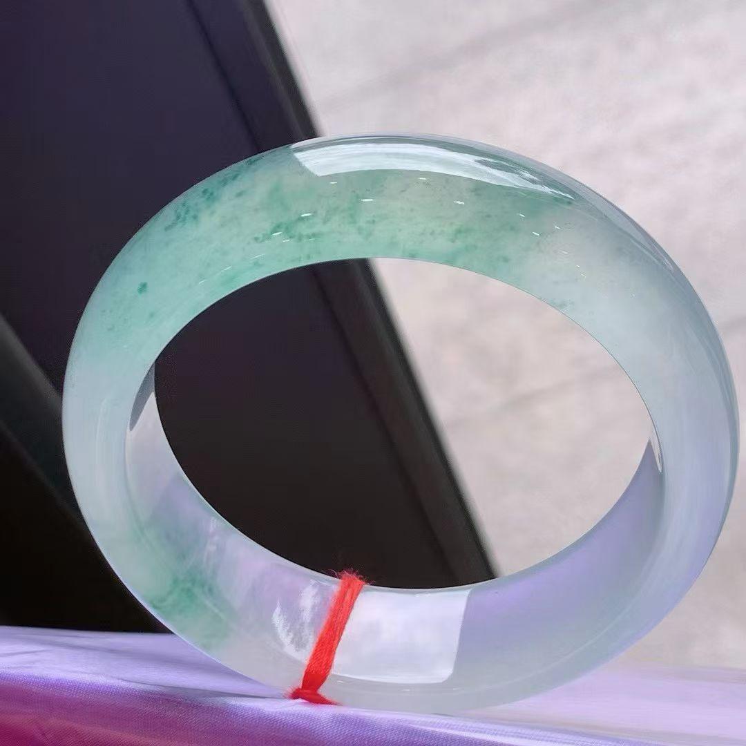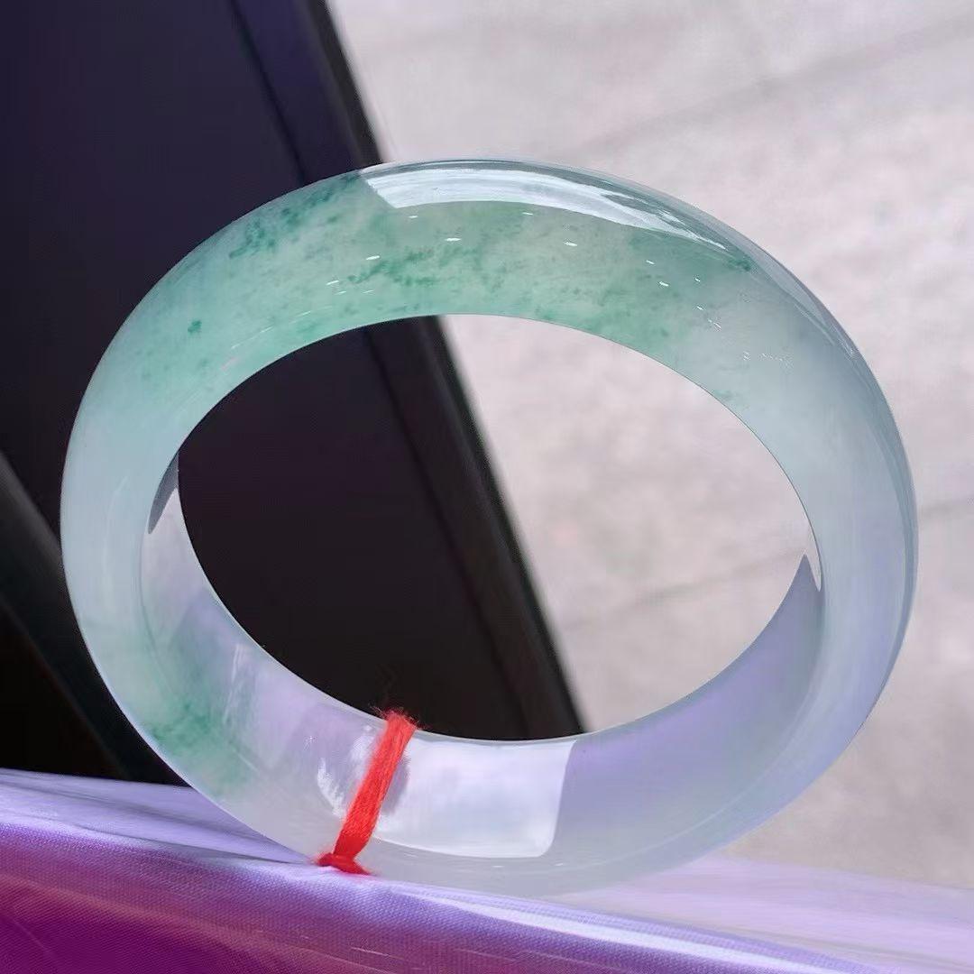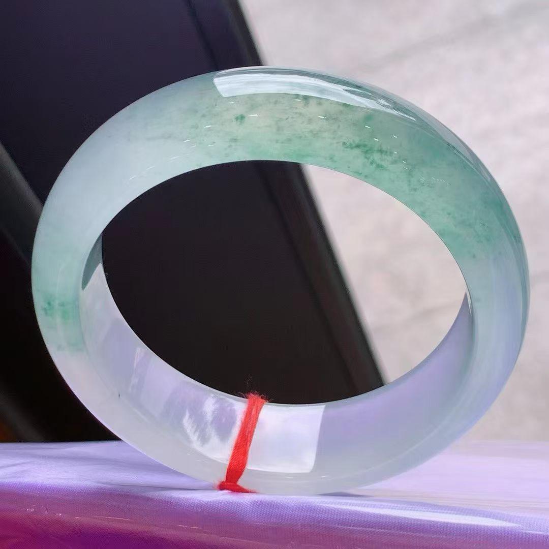 高冰飘绿正圈手镯,通透起胶,完美小七价,大圈口59.7*18.2*9mm对庄询