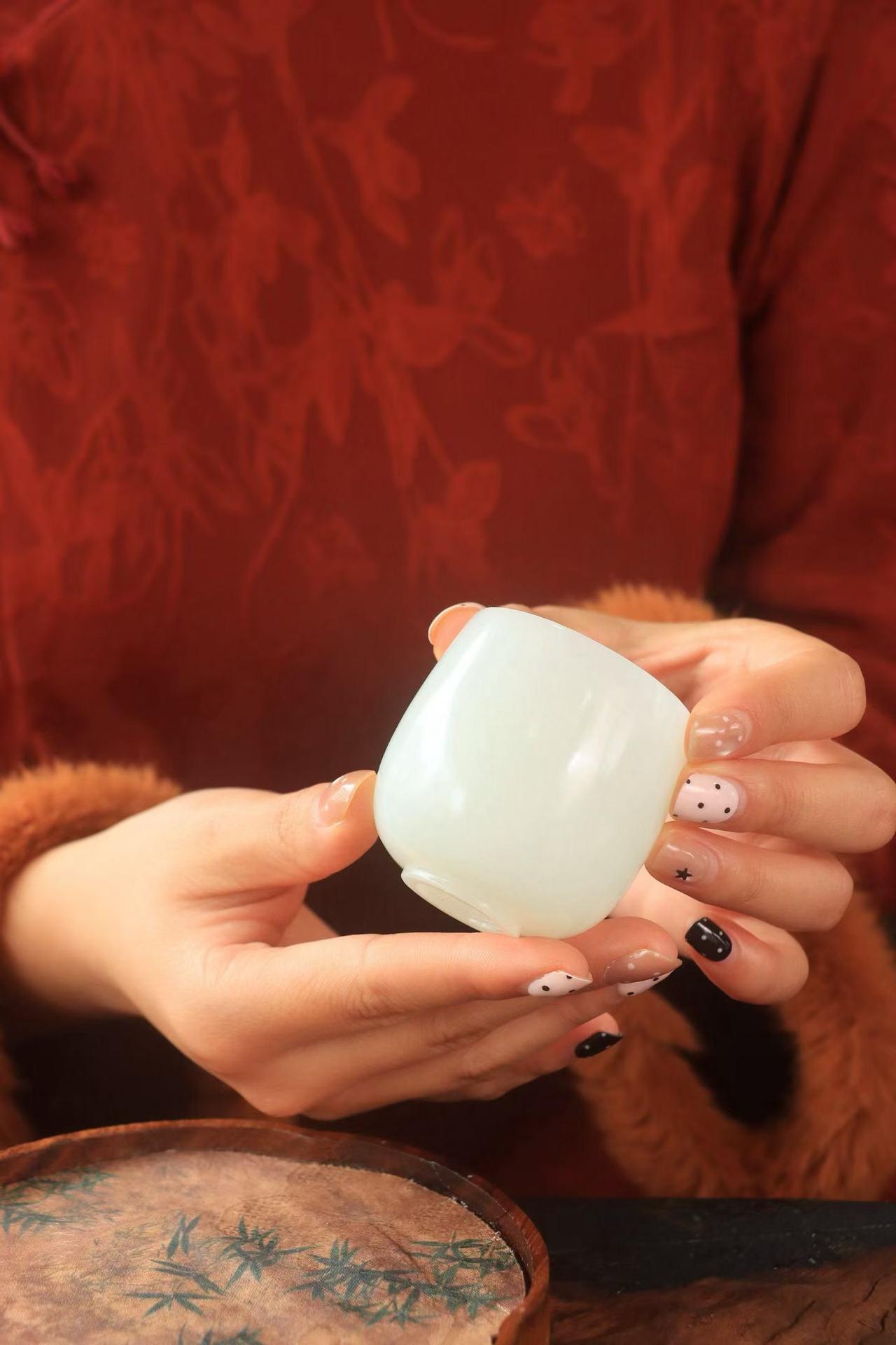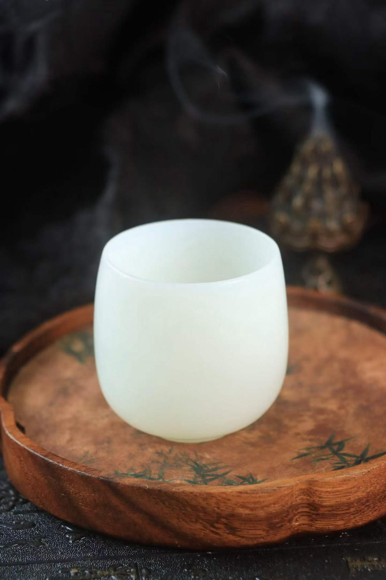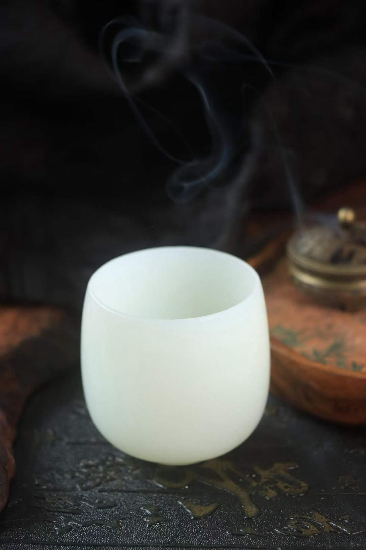 精选和田玉羊脂玉茶杯,温和细腻,脂润十足~🍃纯手工薄胎工艺,茶杯,是香、甘、醇、活的凝聚,藏着人生百味,当袅袅的茶香飘散,或隐或聚,小品一杯,悠哉悠哉。