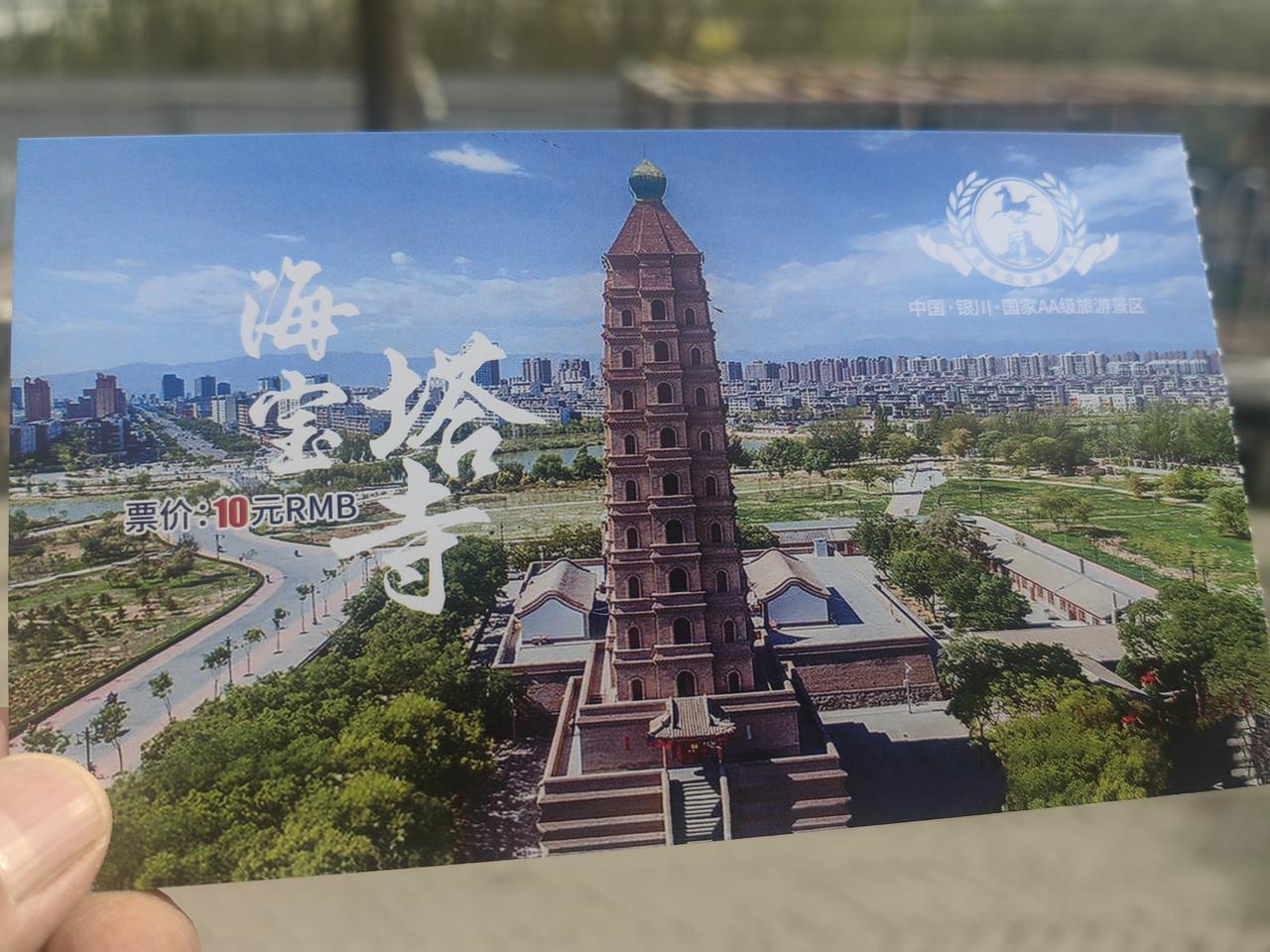 海宝塔,亦称黑宝塔、赫宝塔、北塔,坐落于宁夏银川兴庆区民族北街的海宝塔寺内。它屹立于寺内大佛殿与韦院殿之间的中轴线上,共有9层,平面呈亞字形,通高53.9米,仅塔座就达9.9米。