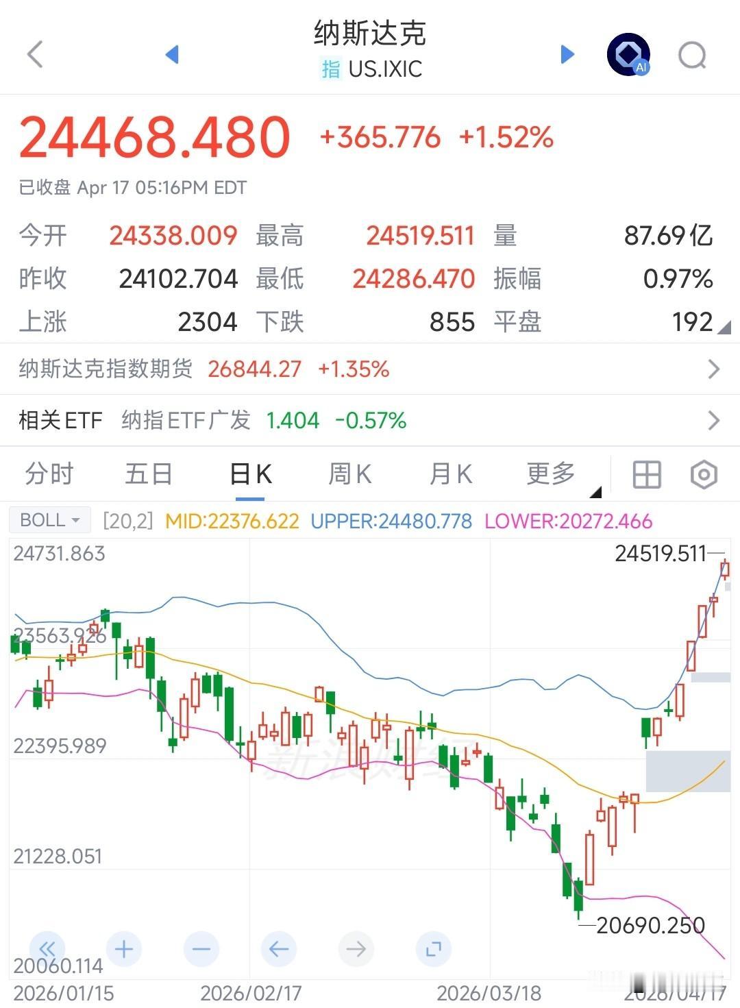 股市同样一样,美股纳斯达克指数的13连阳也可能终止。