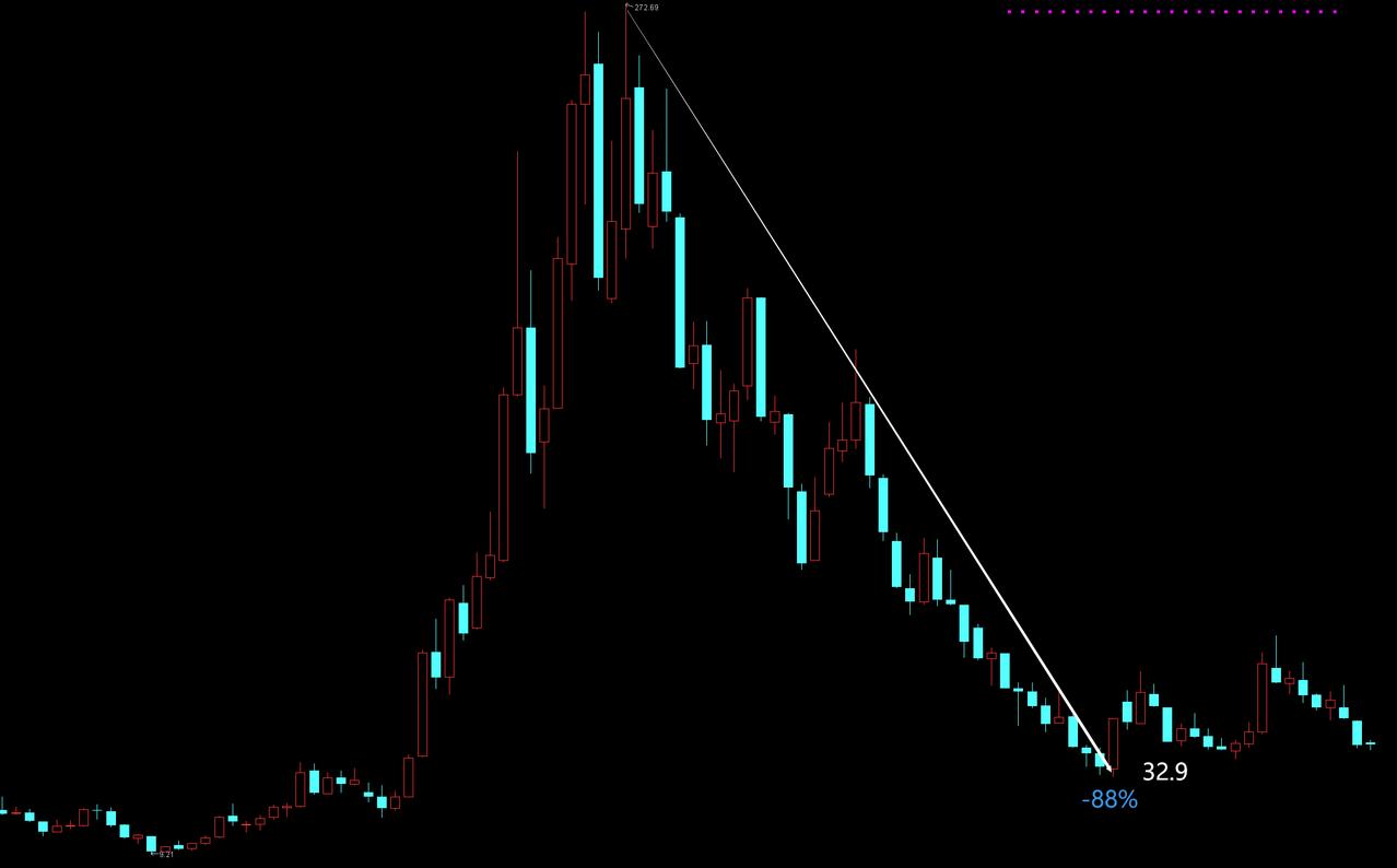 比如,某白酒股从272元多,一路跌到32.9元,暴跌88%,高点时投入100万元,如今只剩下12成元。如果在这只股上越跌越买,补仓能补到崩溃,哪怕家里有矿都补不到底。
