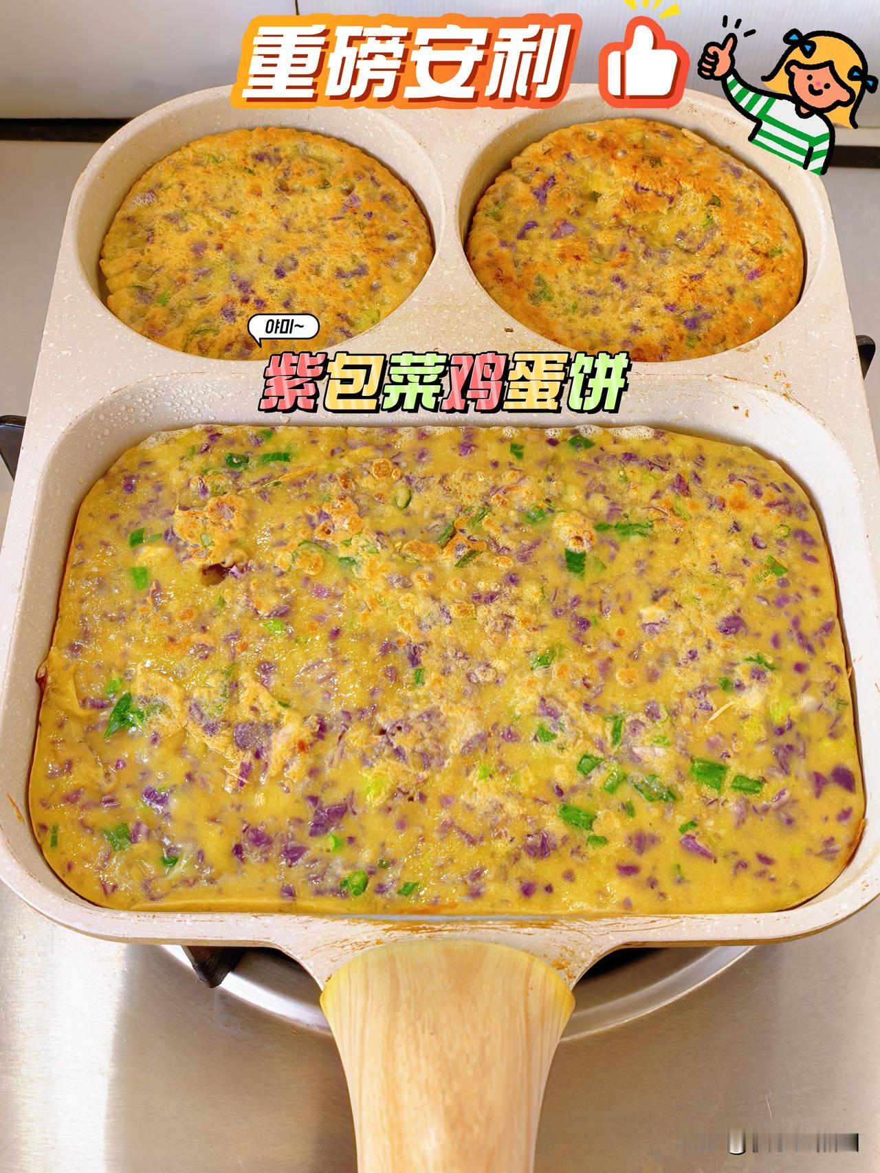 周末两个人简单好吃的早餐 [微风]紫包菜鸡蛋饼 [微风]永和豆浆 3个鸡蛋,适量面粉、紫包菜,一把葱花 盐胡椒粉一点点🤏,本来还要放孜然粉辣椒粉的,那布丁就想不到吃了 紫包菜鸡蛋饼圆形长方形随心所欲[大笑]