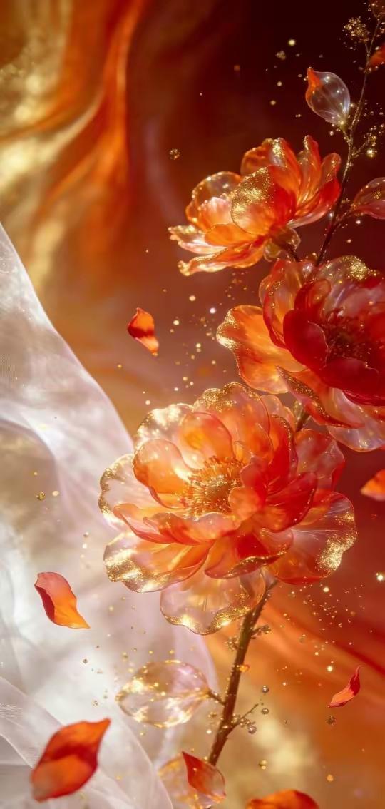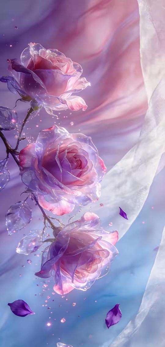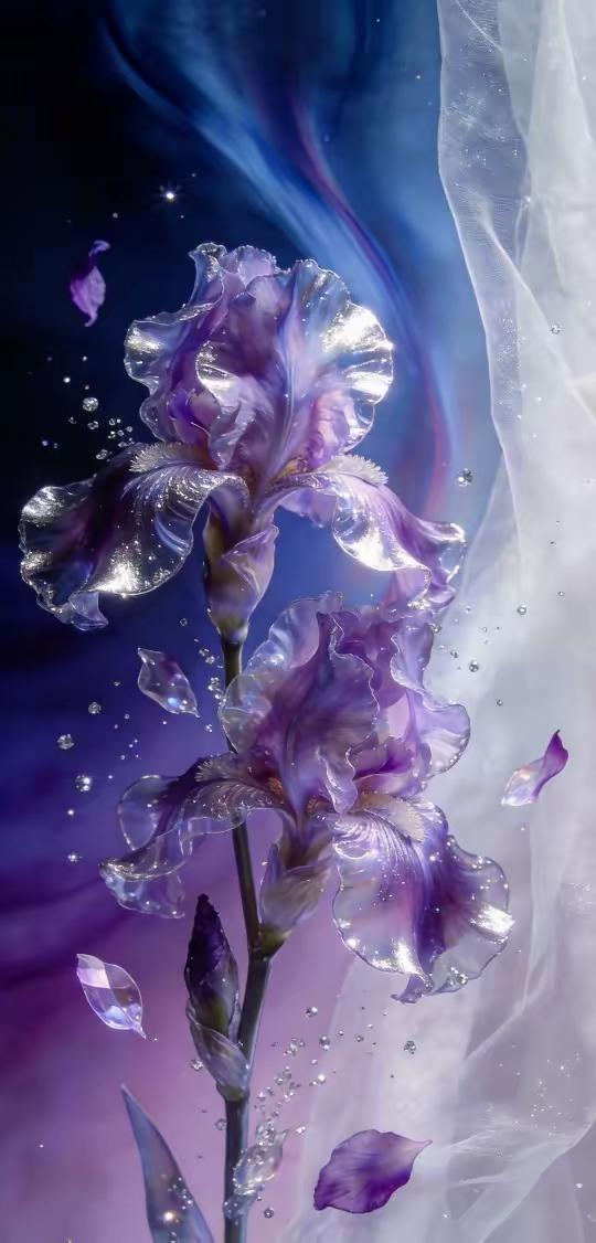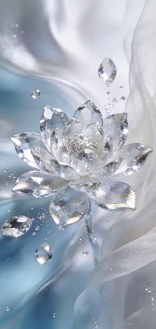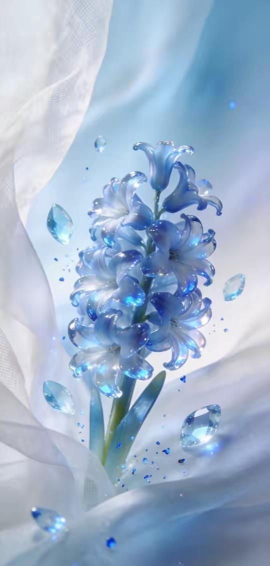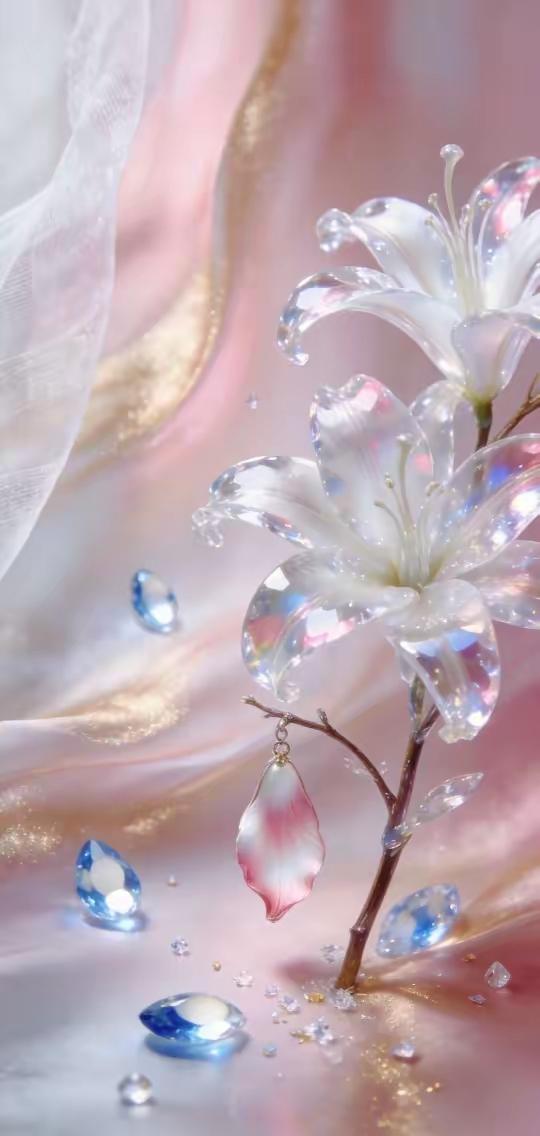 手机壁纸~当花魂凝作琉璃,便有了这一捧清透的温柔。在柔纱漫卷间,将世间的清辉与美好,都揉进了这晶莹的花影里