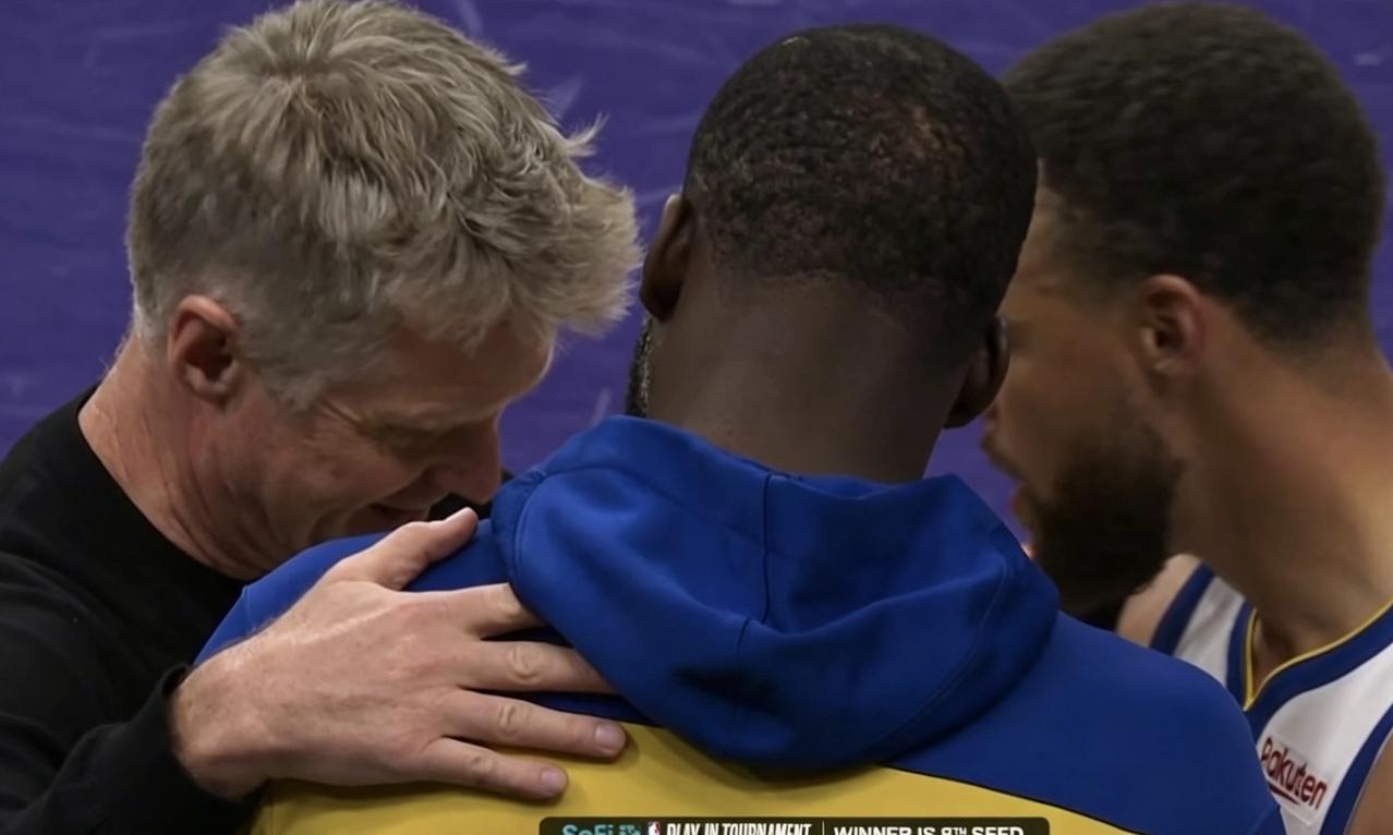 被换下场之后,科尔,追梦和库里3人拥抱在一起,科尔跟他们聊了许多,明显是在鼓舞他们!