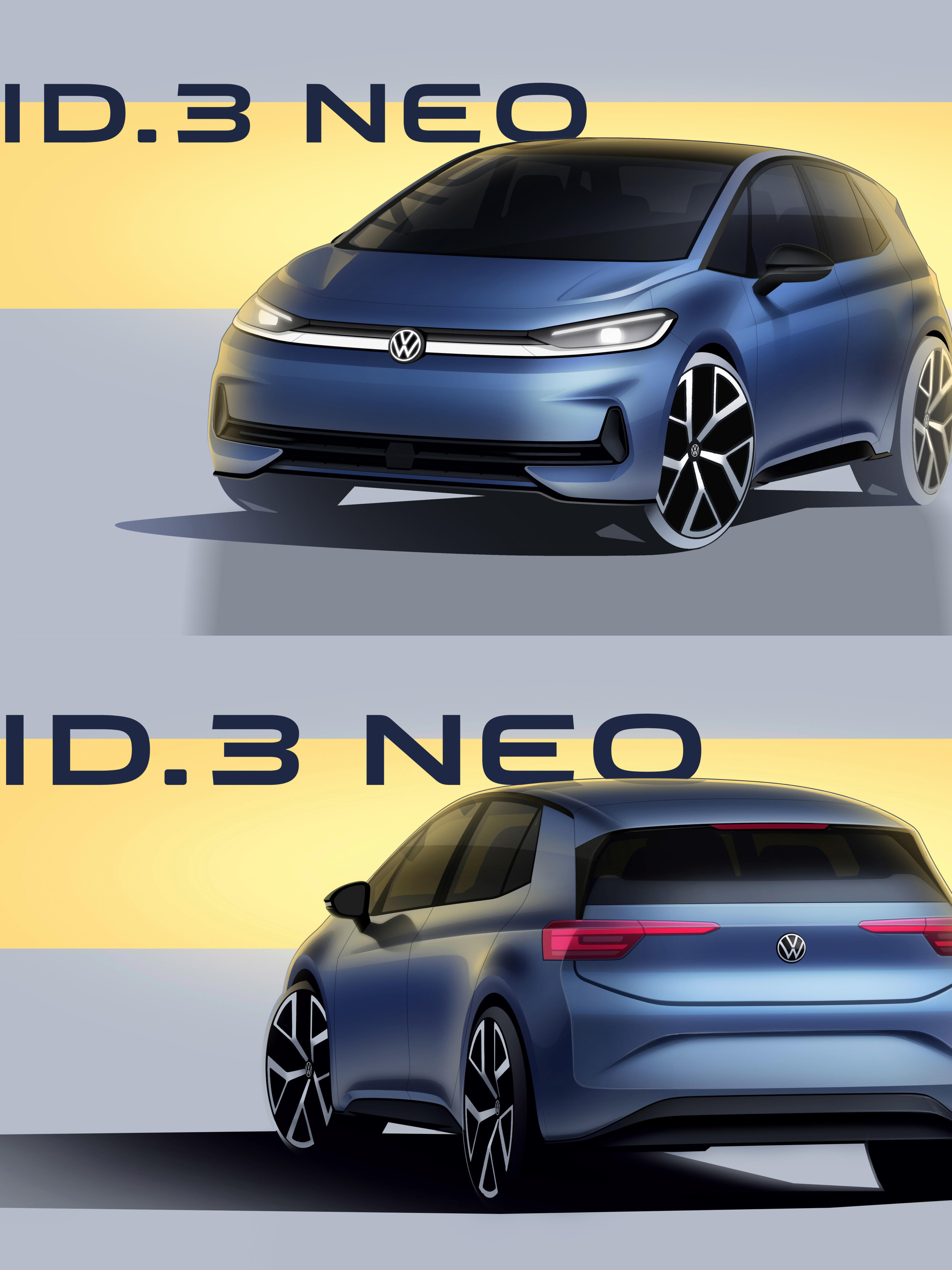 大众ID3 NEO的设计图 大众 ID.3 四月中旬将进行第二次改款依旧基于 MEB 平台打造ID.3 NEO 会是 MEB 平台第一个具备单踏板模式的车型新车大众