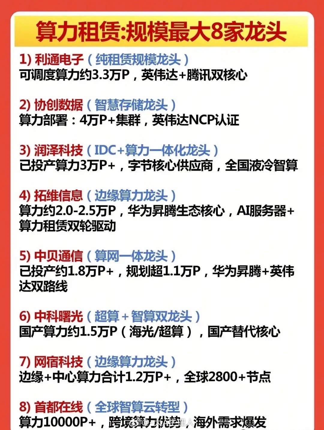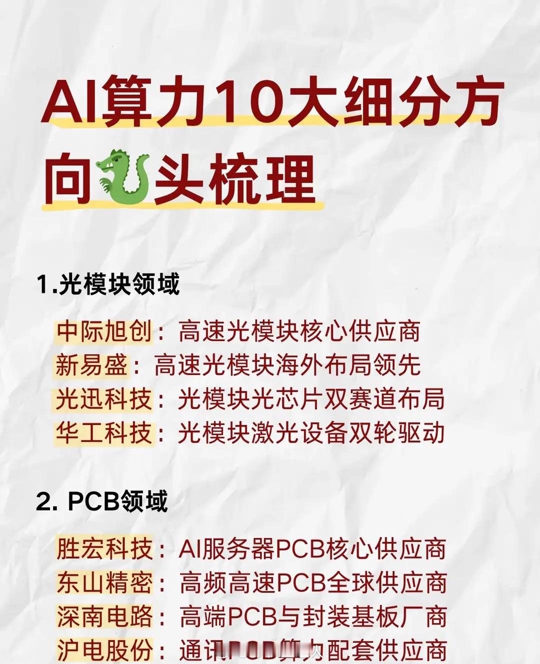 算力主线不迷路!10大细分领域核心龙头梳理,收藏备用。