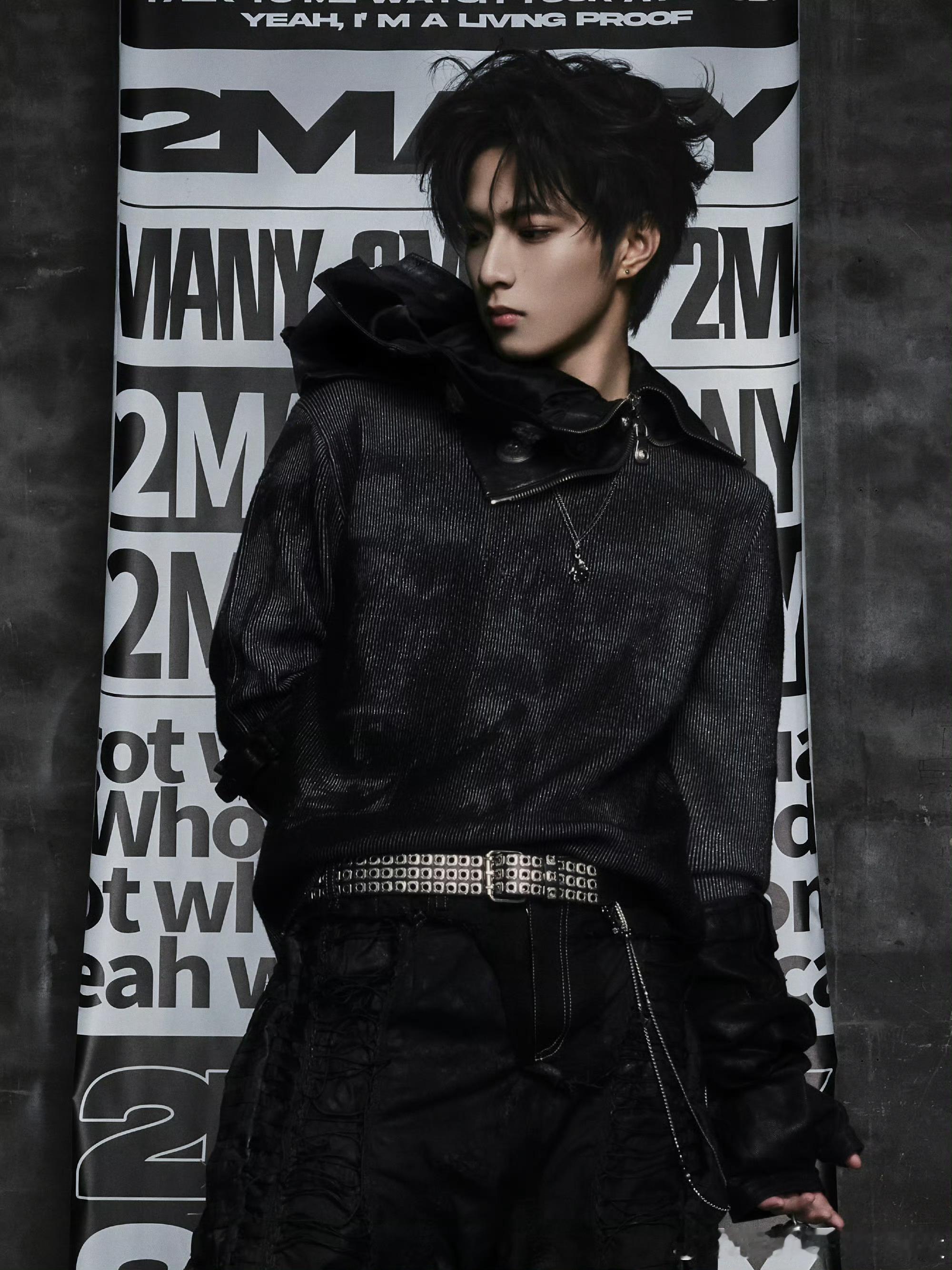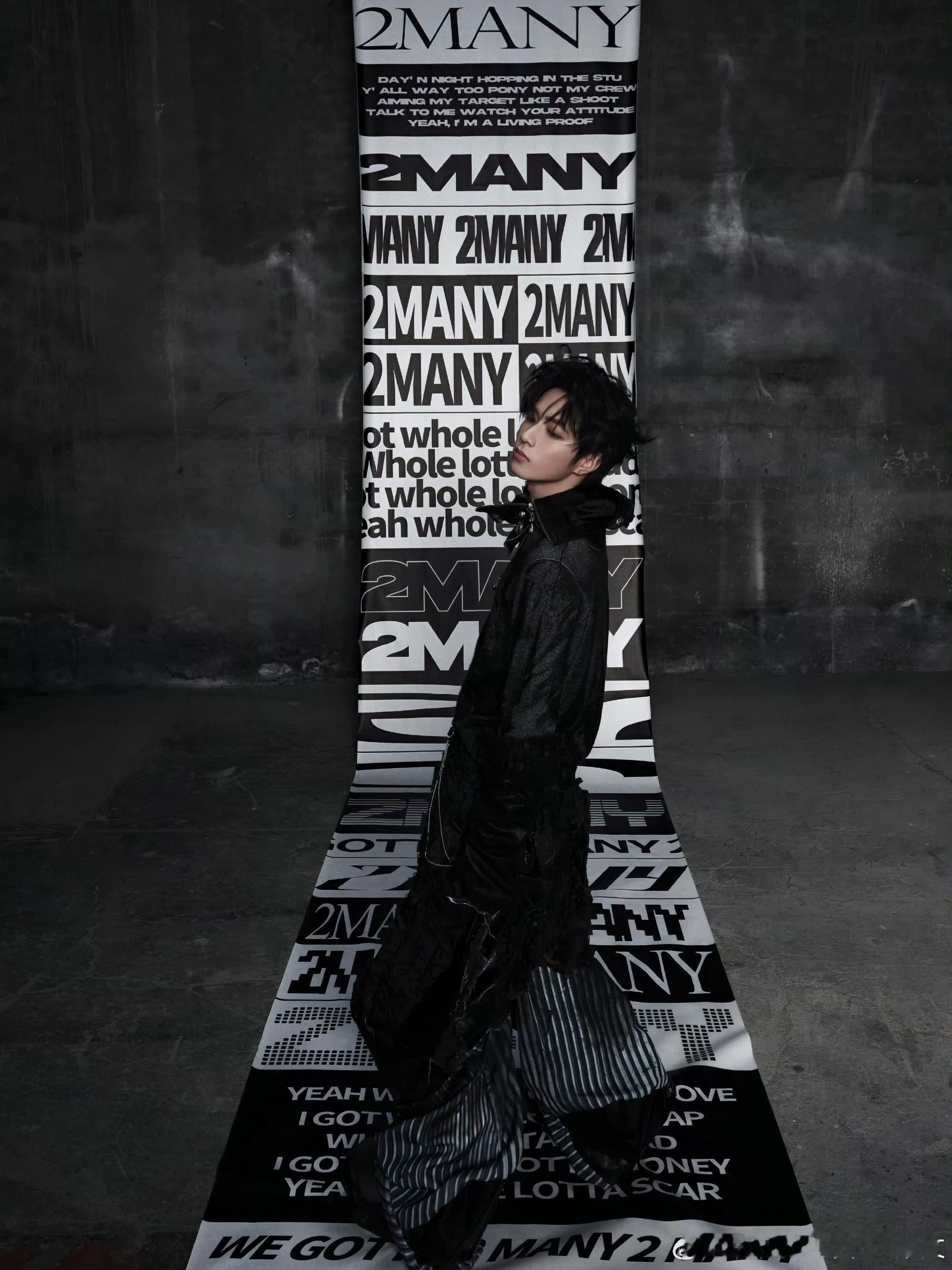 刘耀文全新单曲《2 MANY》大片释出,All black色调的条纹外套配条纹阔脱裤,搭配烟熏妆妆容整个人先锋酷飒,呈现别具一格的魅力😎