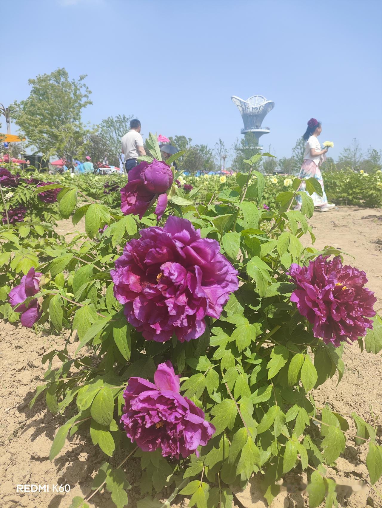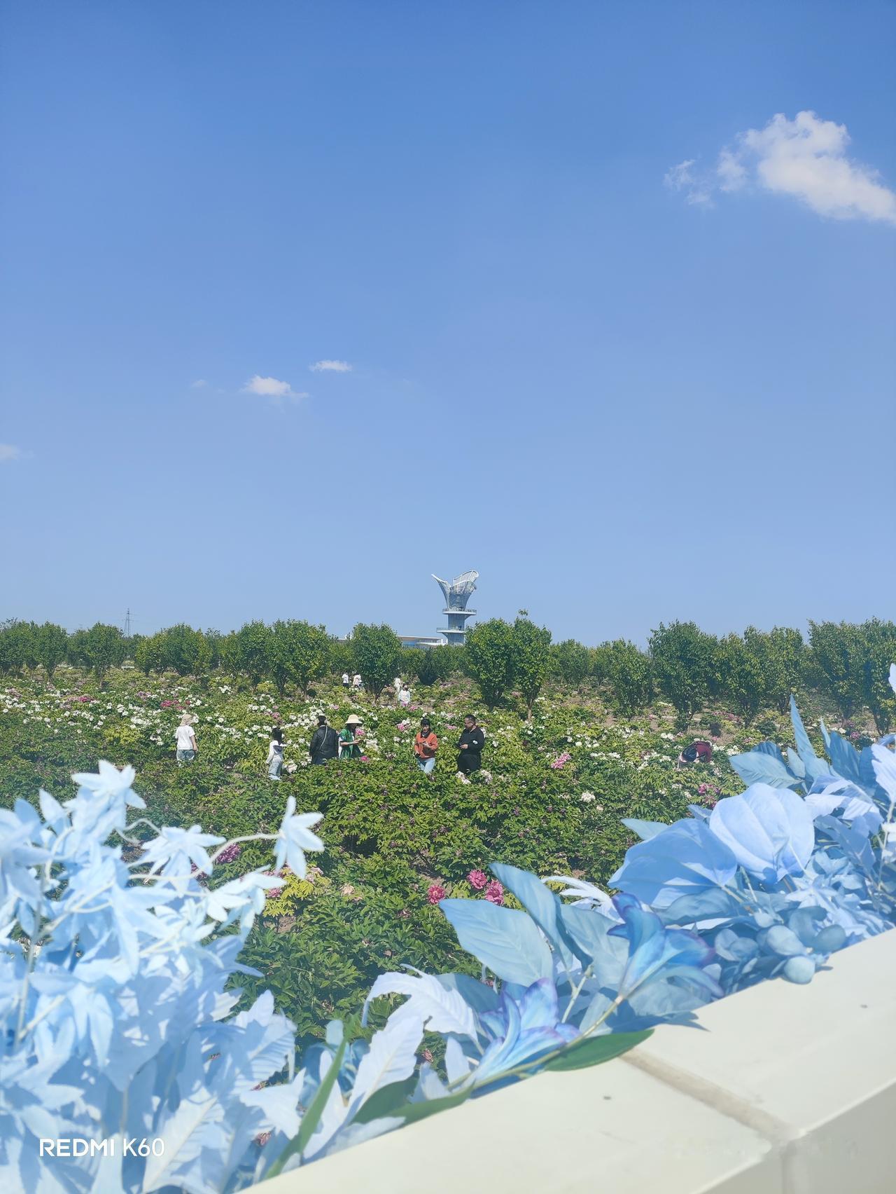 这园子始建于2011年,最初占地423.8亩,现在扩到1100亩,牡丹种植面积900余亩,有660多个牡丹品种、150多个芍药品种。凭借花期调控技术,五一还能看到花。园内42.6米的观花塔是最佳观景点,登上去千亩花海尽收眼底。