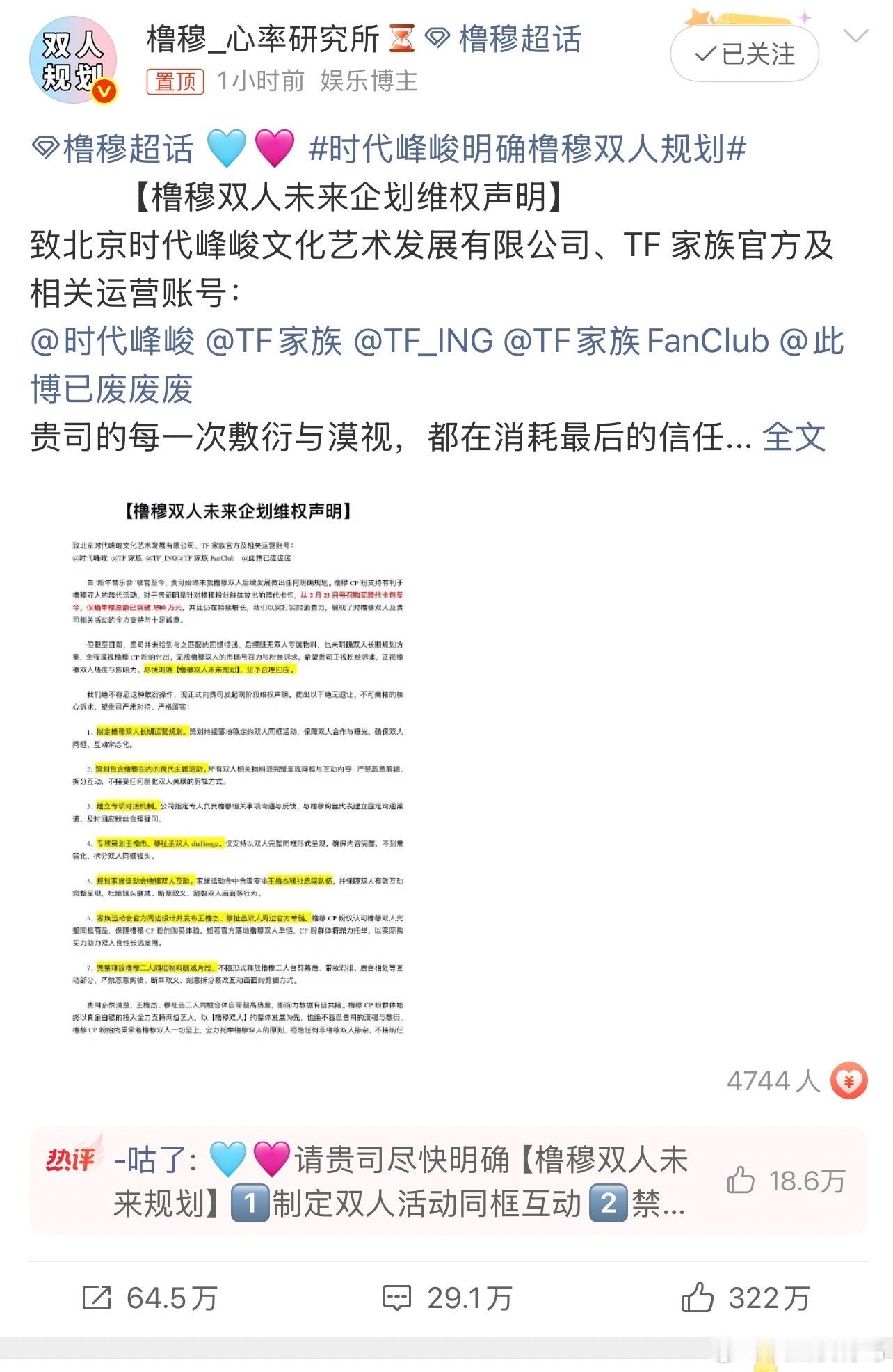 橹穆cp粉维权声明橹穆cp粉在和时代峰峻维权 ,请时代峰峻正视橹穆CP粉诉求