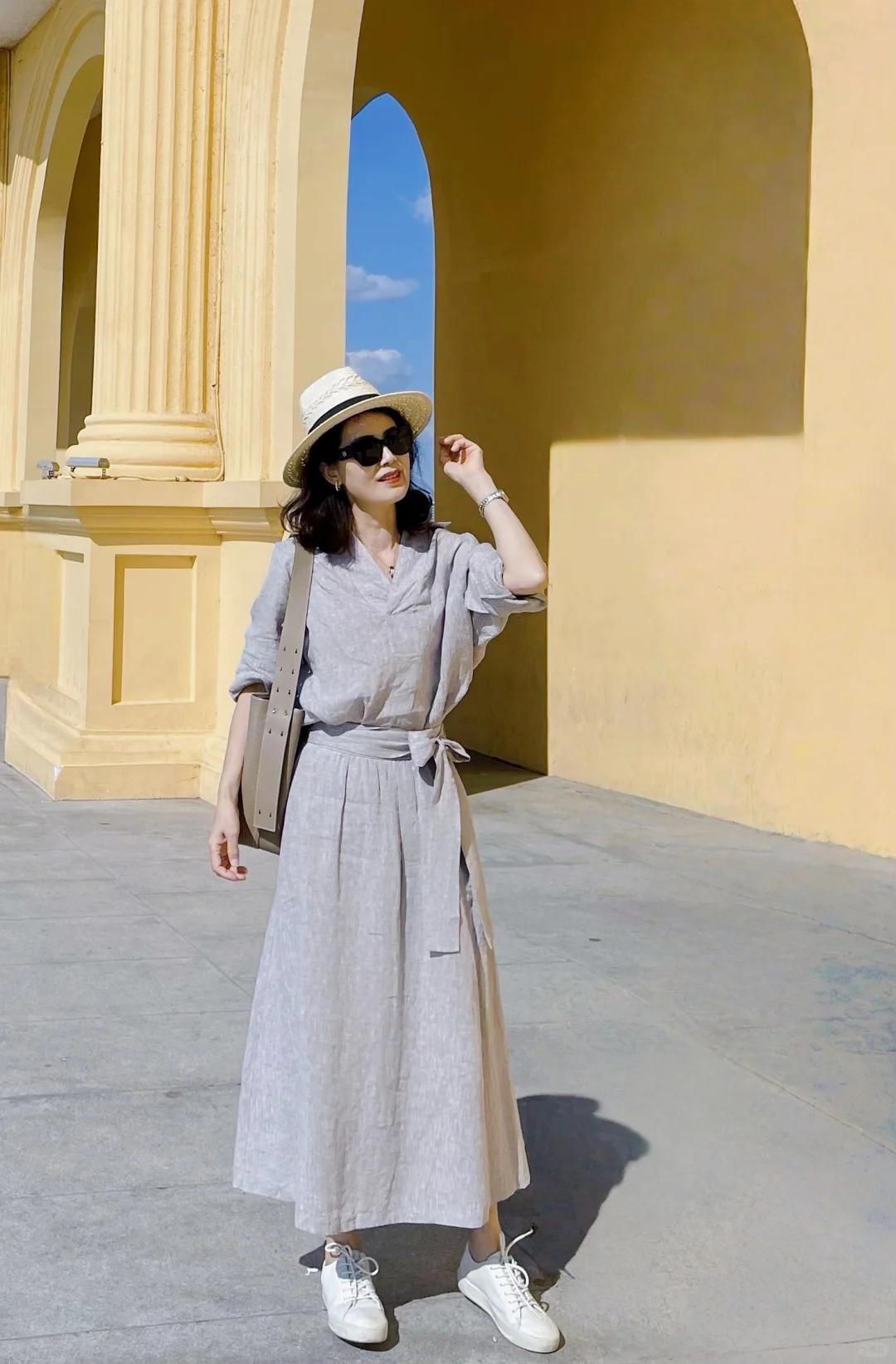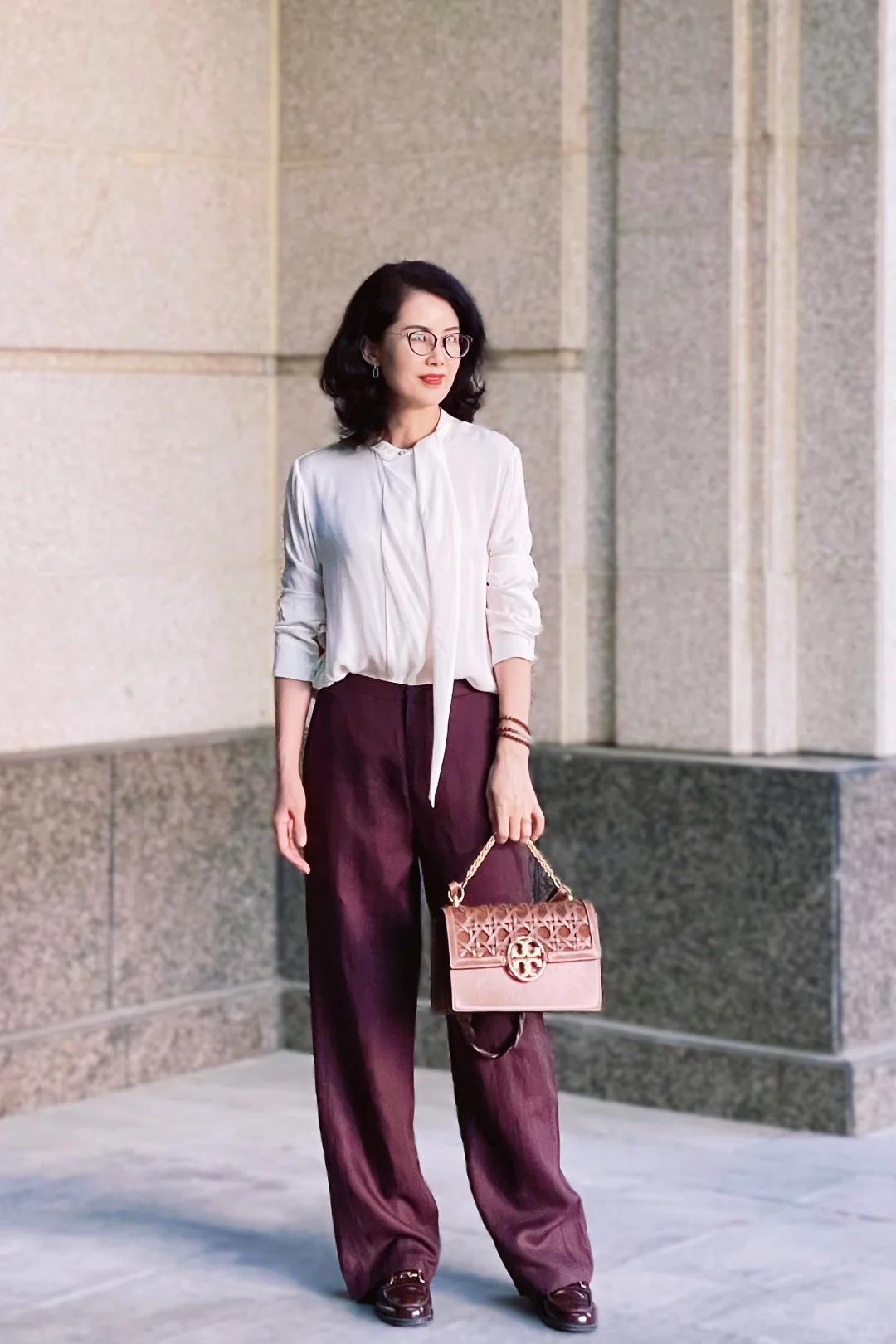首选简约基础款,拒绝花里胡哨的图案和多余装饰,纯色棉麻衬衫、垂感阔腿裤、简约针织开衫,都是闭眼入的单品,利落又显精神,还能藏住身材小瑕疵。