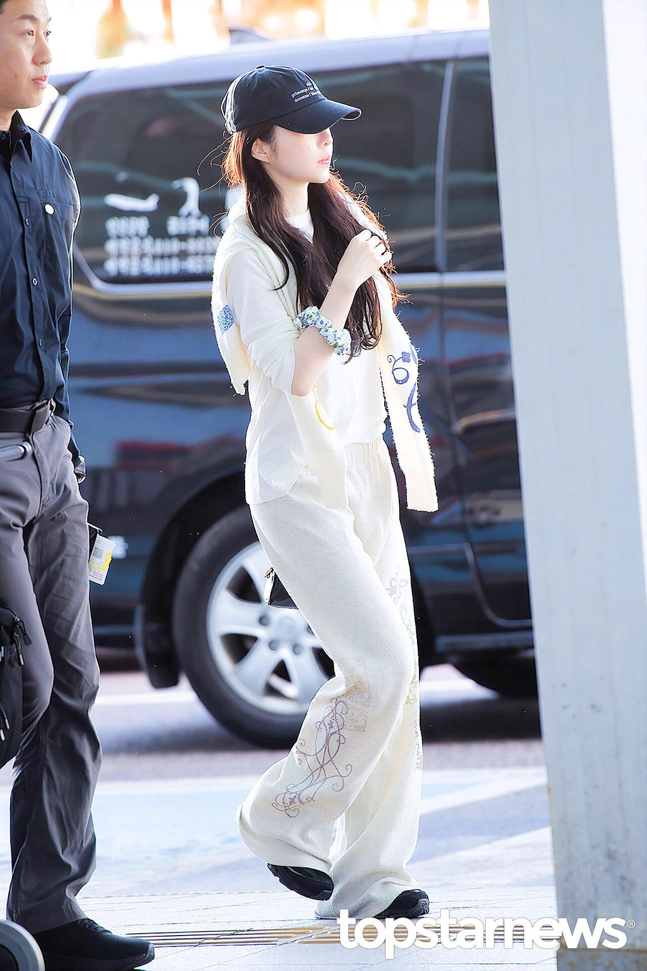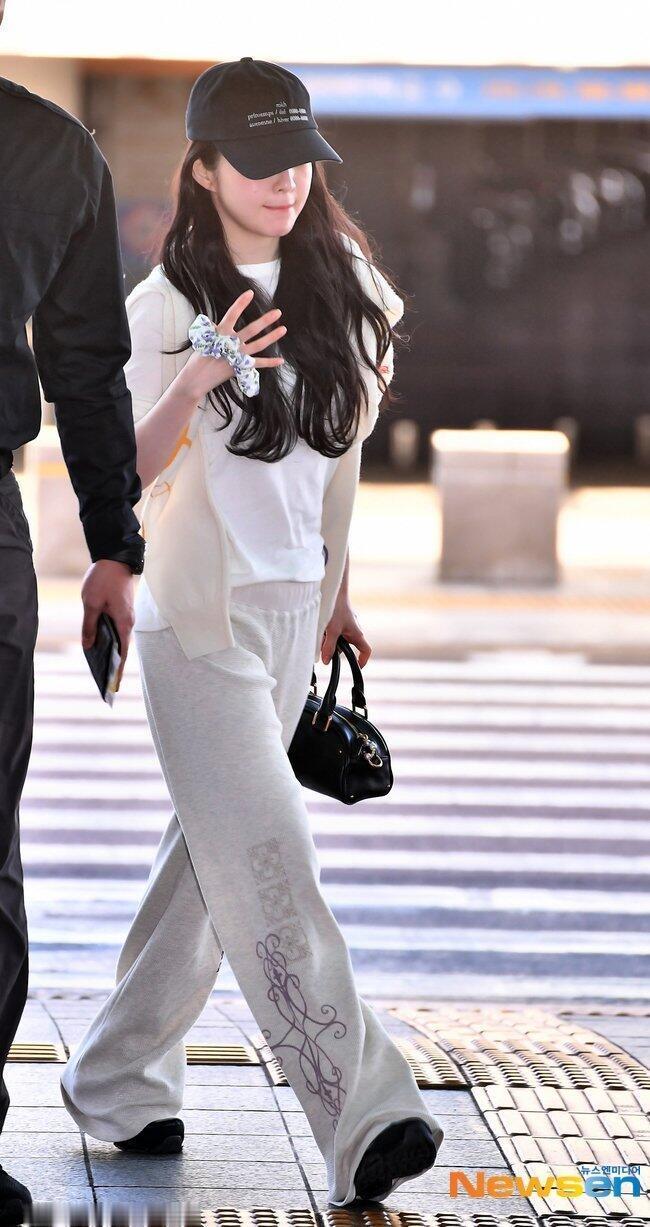 裴珠泫街拍,浅色系穿搭好温柔! 一身奶白系休闲套装软乎乎的,华夫格面料自带松弛质
