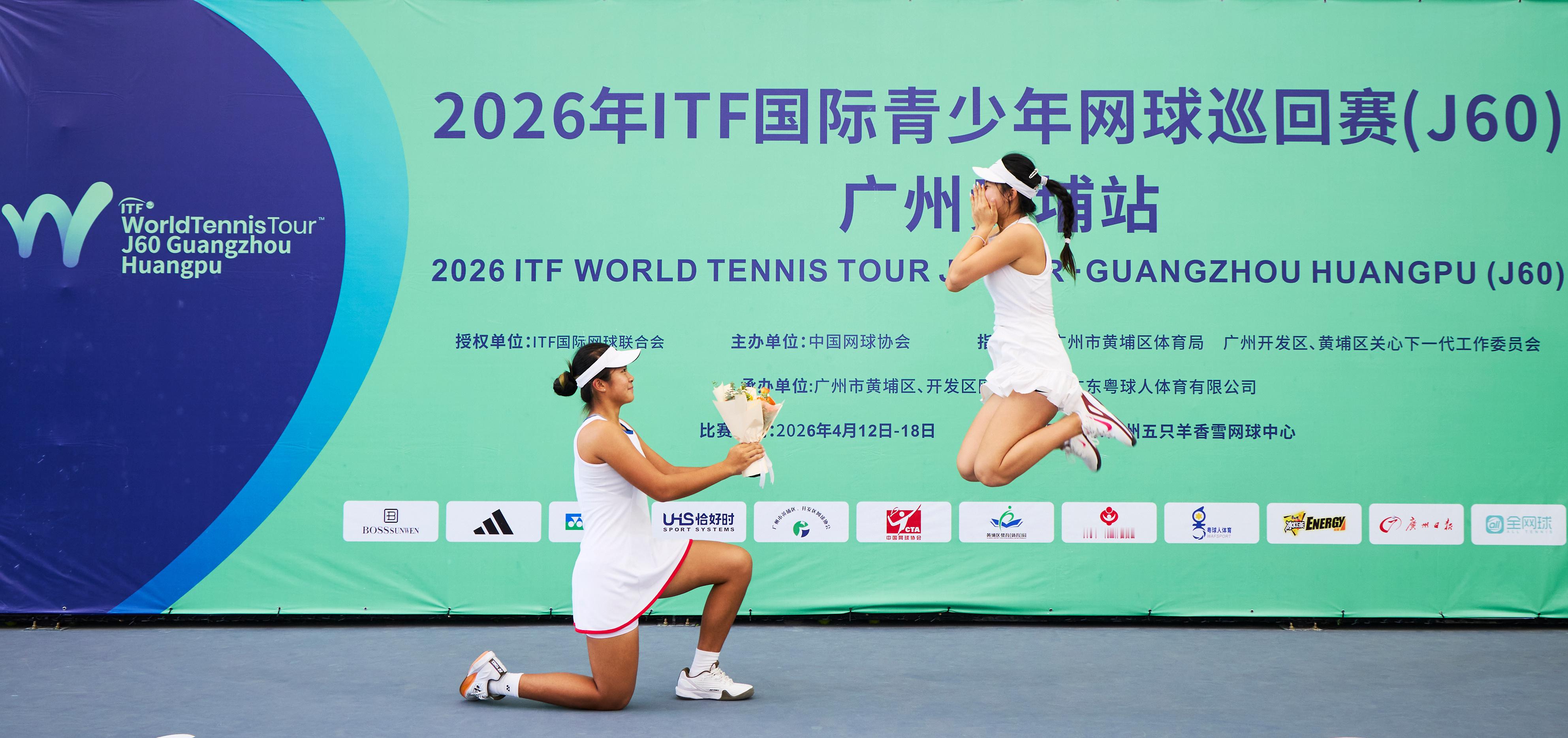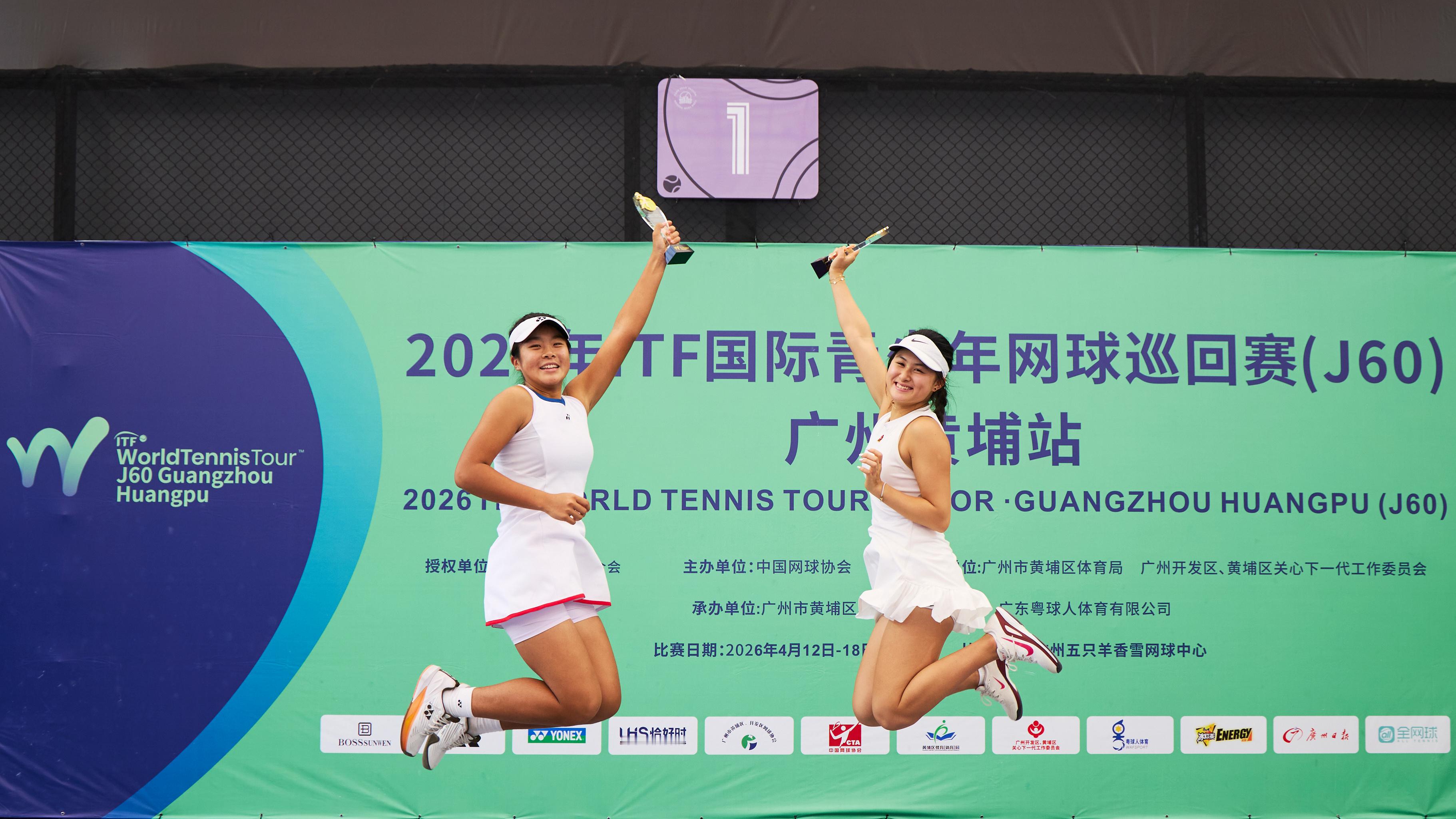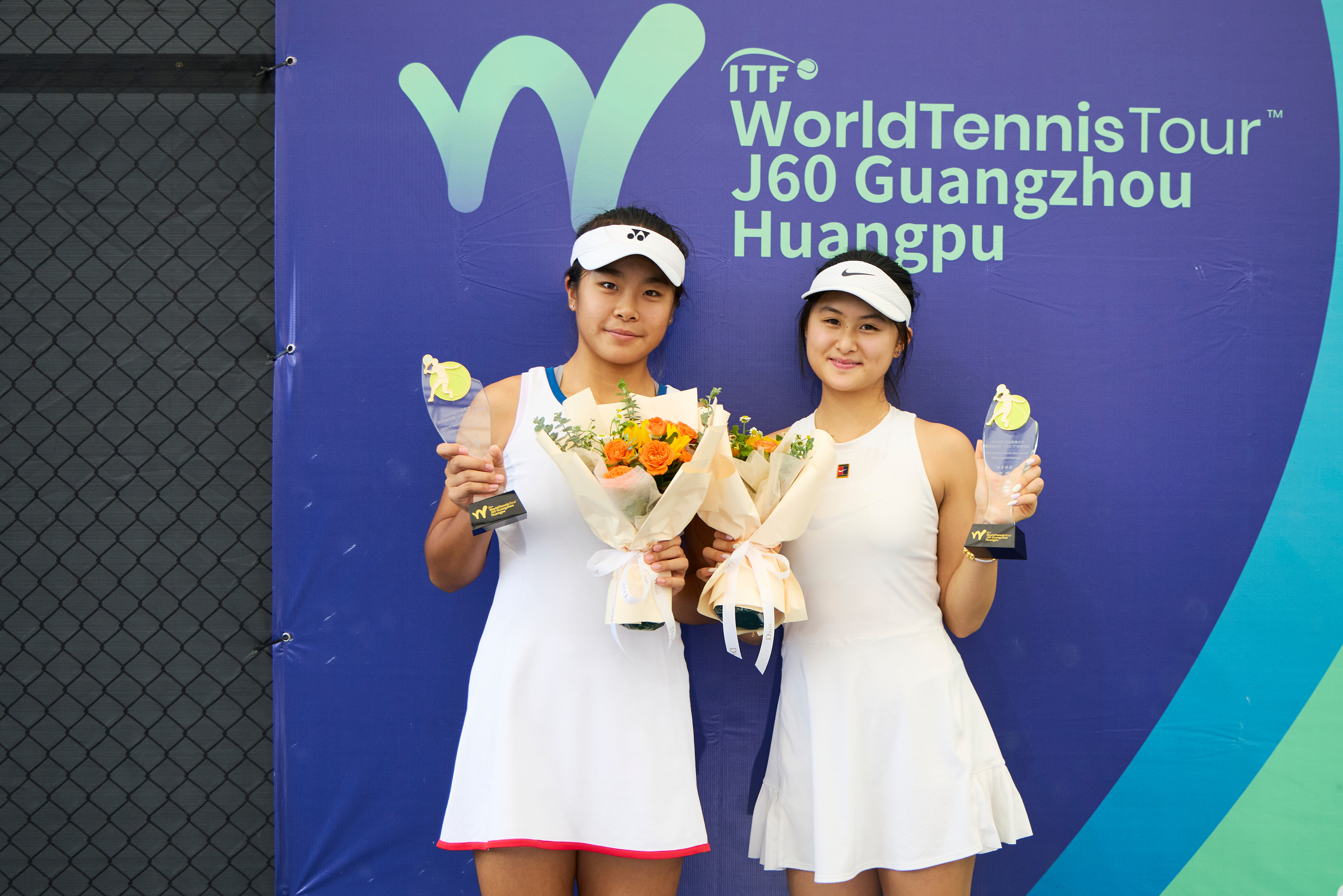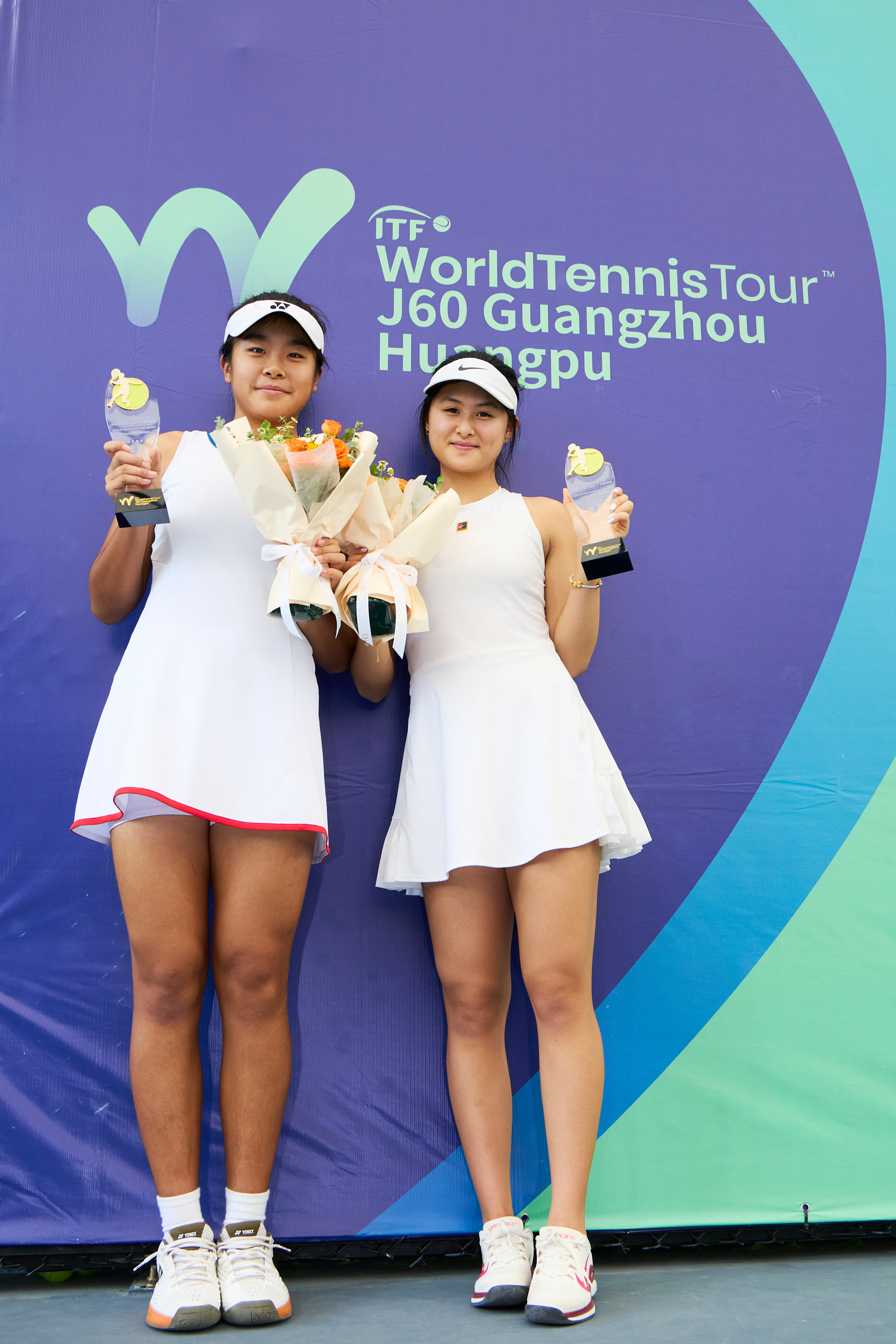 羞答答的ITF J60广州黄埔站女双冠军史金灵/孙嘉忆捧杯照萌化了!
