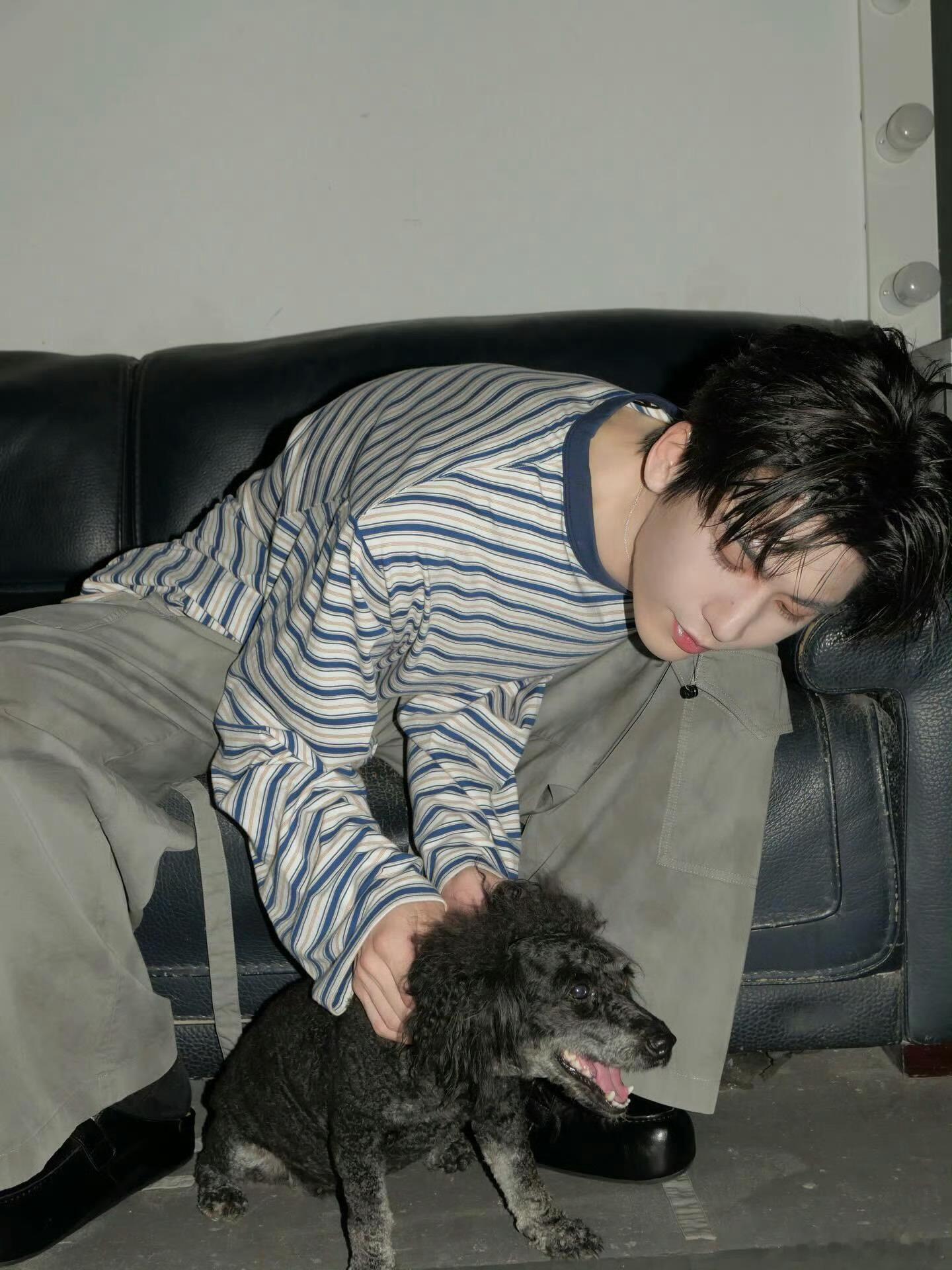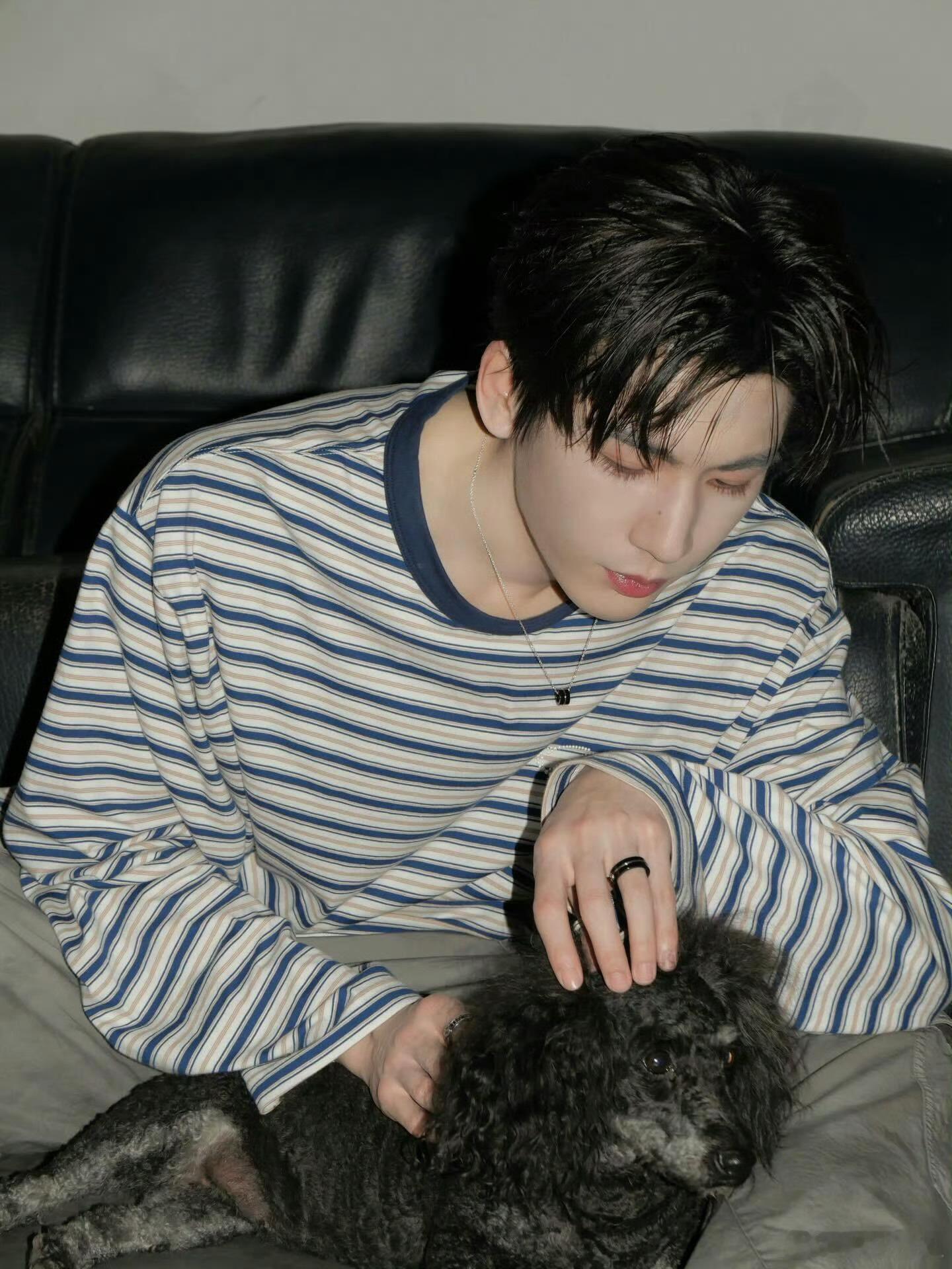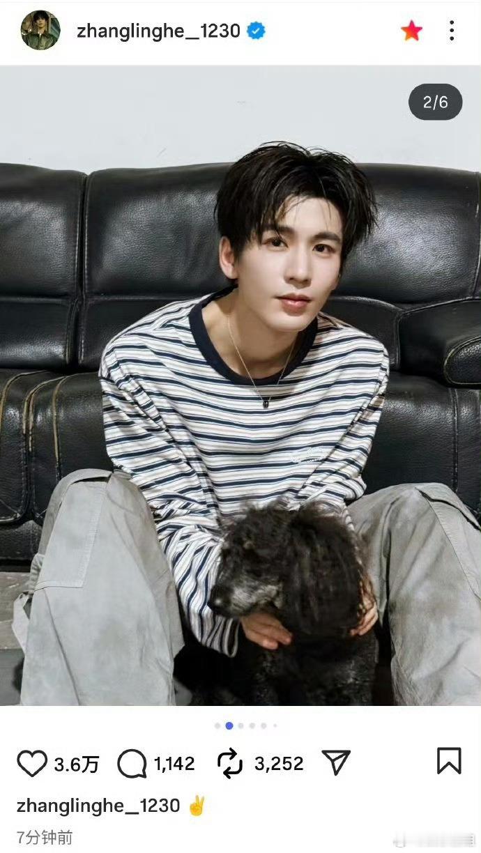 张凌赫ins更新萌照 张凌赫ins更新萌照!条纹男大与狗狗的温馨时刻~ 张凌赫还翻牌回复粉丝 “我还没狗狗” 太可爱了🥺春日心动放映季