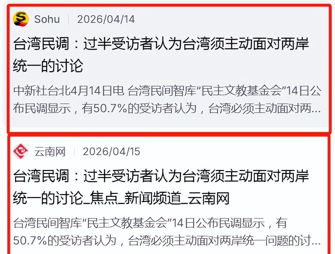 这份引爆舆论场的民调并非来自大陆媒体,而是台湾本土民间智库"民主文教基金会"于4月14日正式发布的。