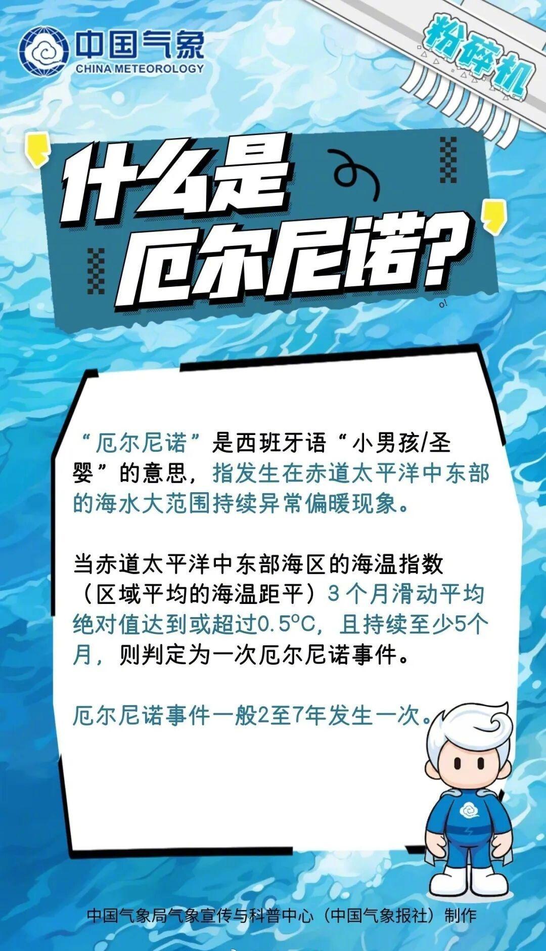 【官方回应140年来最强厄尔尼诺:今年将形成中等及以上强度厄尔尼诺】近日,“140年以来最强级别厄尔尼诺”及其引发的全球高温影响等话题引发公众广泛关注。国家气候中心回应称,预计5月将进入厄尔尼诺状态,并于夏秋季形成一次中等及以上强度的厄尔尼诺事件,此次厄尔尼诺事件至少持续至今年年底。就“地球或今年冲击高温极限”的言论,国家气候中心首席预报员陈丽娟表示,考虑到厄尔尼诺影响的滞后性,现在断言还为时过早,但相关风险在显著上升。