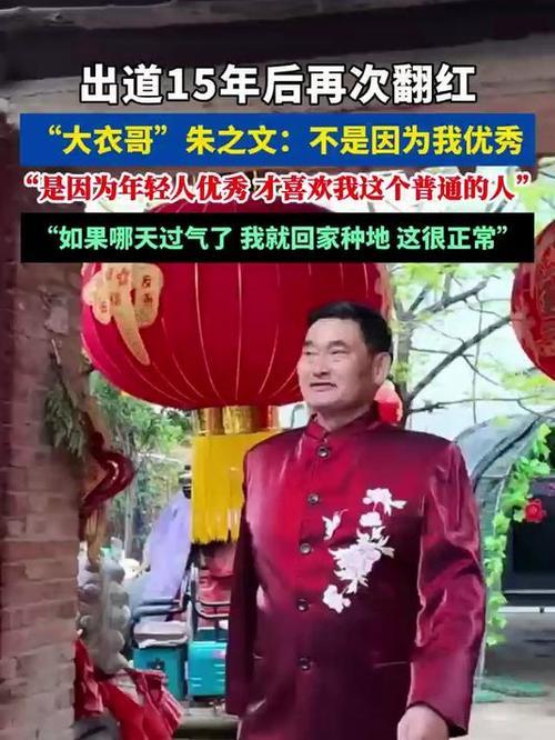 2026年4月18日,朱之文亮相曲阜新青年音乐节,因“你就是朱之文”热梗再度翻红。他质朴回应:“不是我优秀,是年轻伙伴太优秀,看得起我这个农民”。出道15年始终保持本色,不飘不傲,坦言过气就回家种地。草根歌手的清醒与谦卑,让他再次圈粉无数。朱村村大衣哥 大衣哥写真