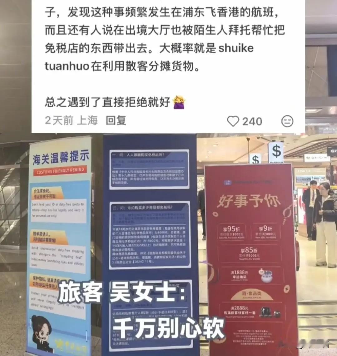 • “洗白”风险:水客团伙自身目标太大,需要利用普通旅客的“清白”身份来分摊被查风险。你眼中的“举手之劳”,在他们眼里是完美的“人肉盾牌”。
