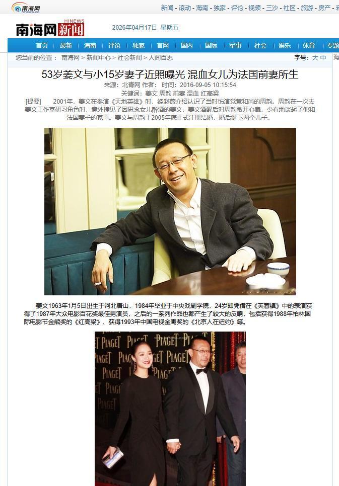 2006年,姜文带着新婚妻子周韵去法国探望女儿。这本是一次试图修补关系的见面,结果却异常尴尬。