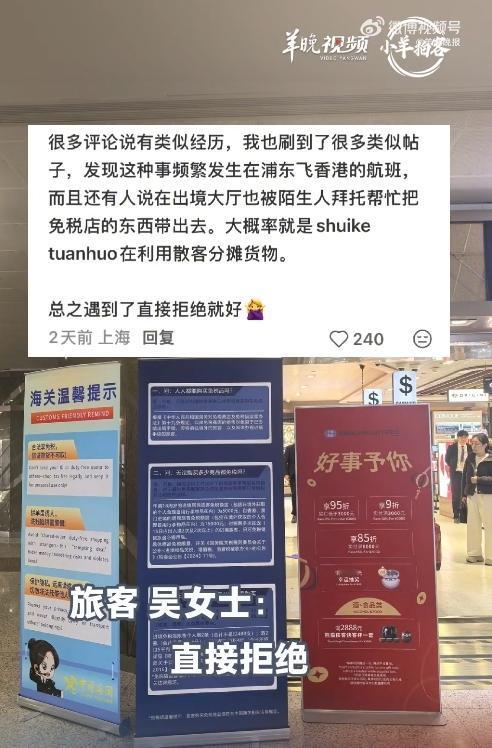 更邪门的是,等登机排队的时候,又一个女生凑上来,说的话、提的要求,跟之前那个姑娘几乎一模一样!吴女士这才断定:这绝对是有组织的!