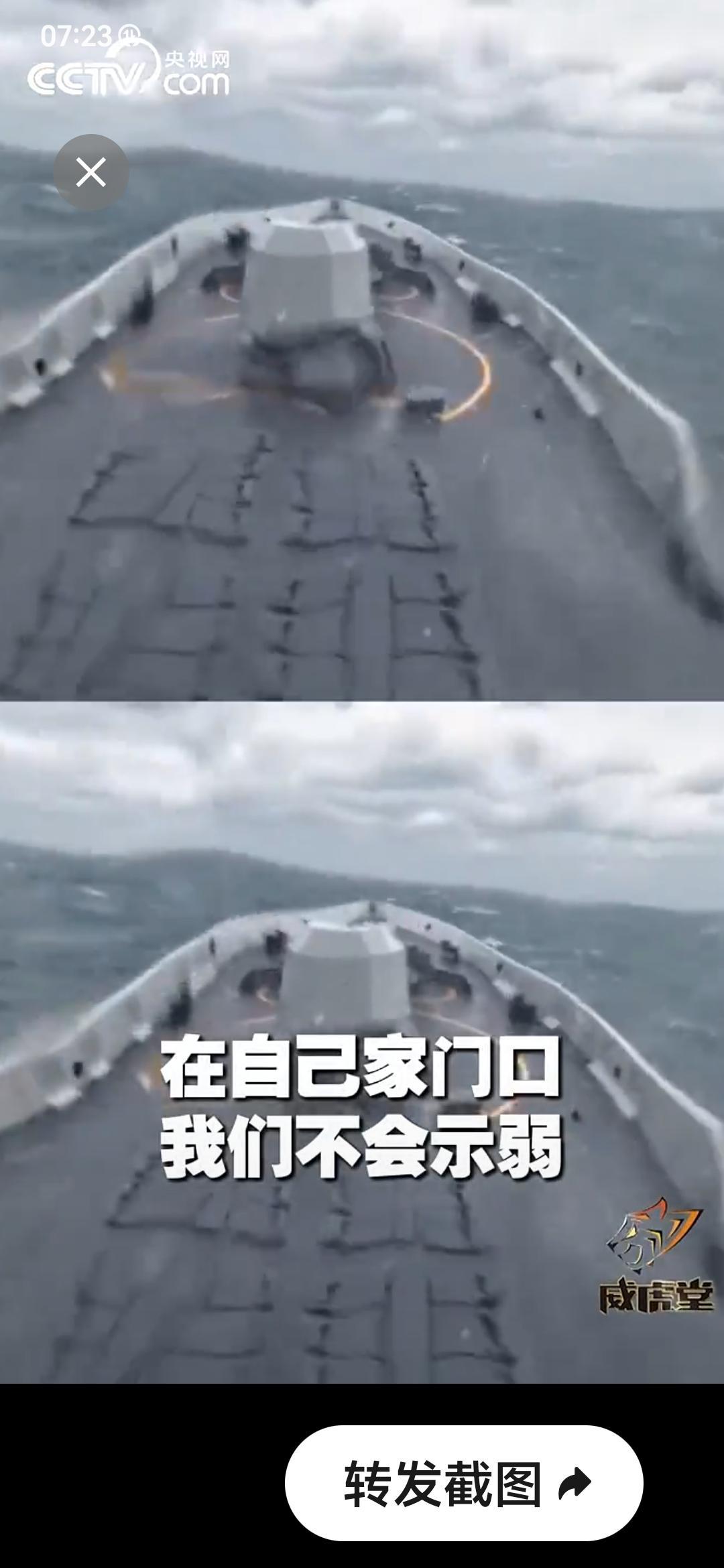 4月17日,央视网发布:有外军大舰强闯海峡,我军舰主炮上弹,强硬驱离! “在自家门口,绝不示弱!