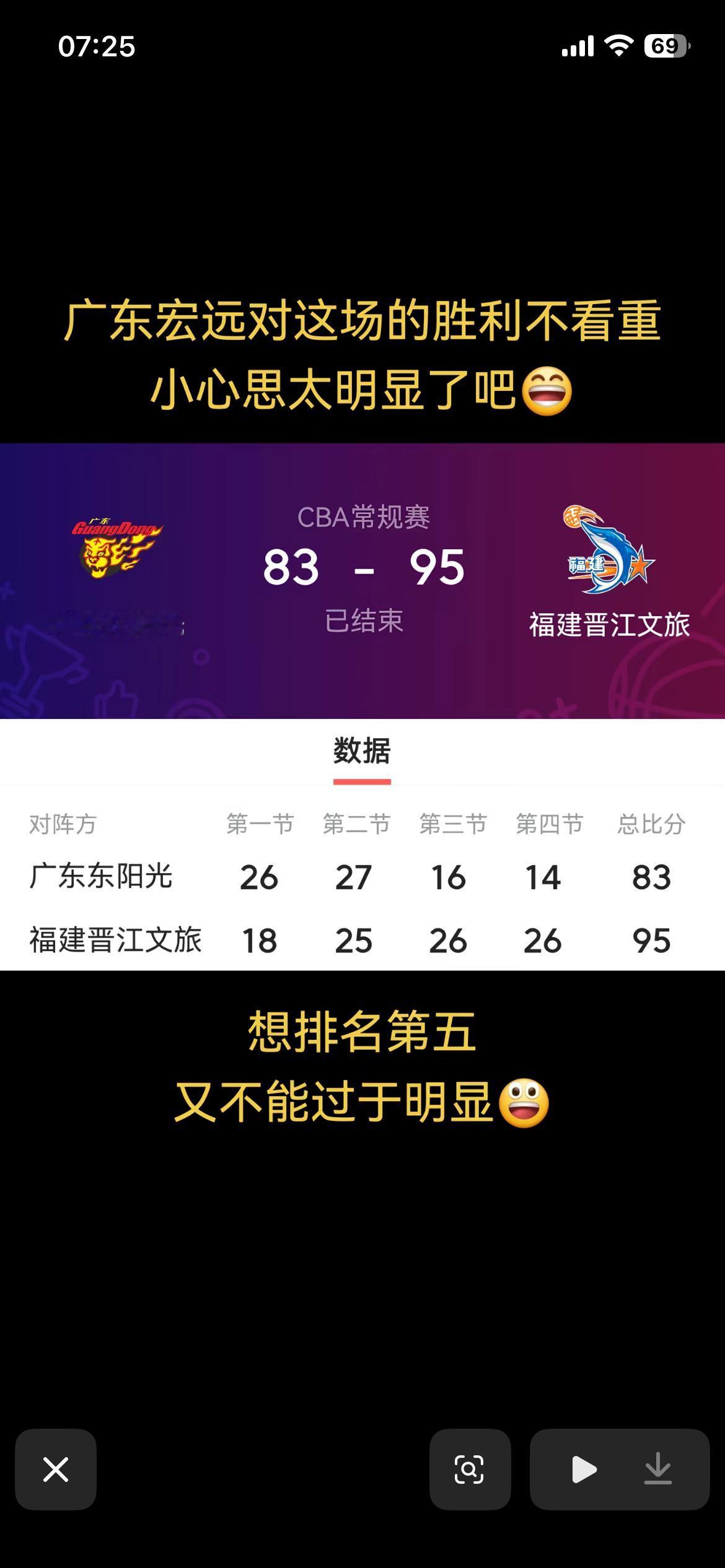 什么?广东队输球是为了回到第五打附加赛多卖一场门票,你可别扯了,想输球非要在主场输,专门跟球迷过不去呀,非要恶心一下去现场花真金白银买票的球迷嘛,还有两场客场随便输一场不就行了嘛,所以干嘛非要在主场输球,持这种观点的纯粹脑袋进水了。