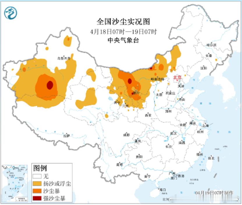 【大风沙尘 华北或有泥雨】昨天到今晨,蒙古气旋和冷锋导致的大风以及动力抬升,导致