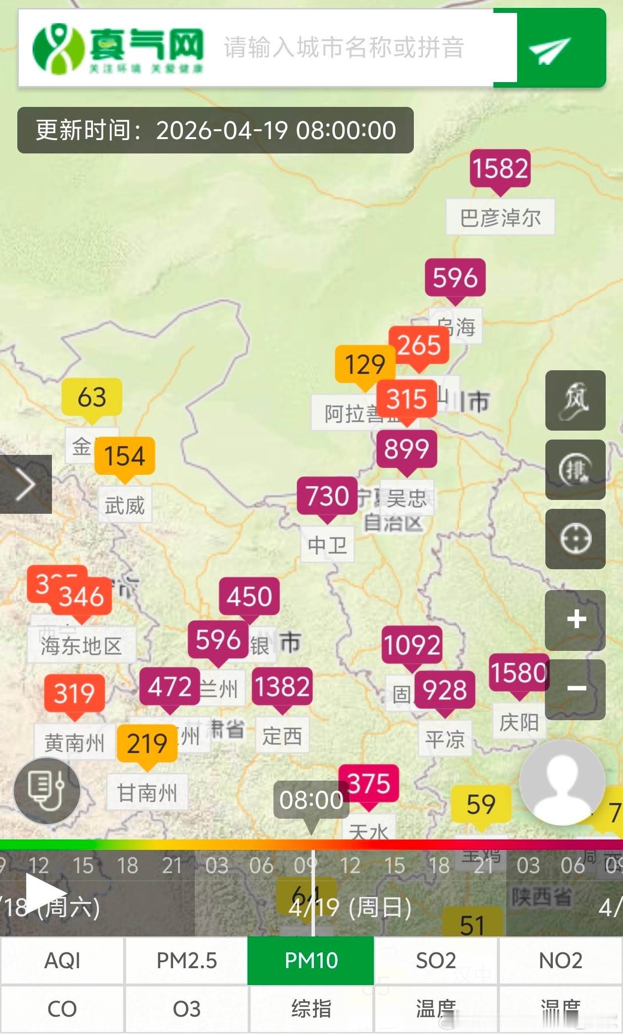 【大风沙尘 华北或有泥雨】昨天到今晨,蒙古气旋和冷锋导致的大风以及动力抬升,导致新疆甘肃内蒙古宁夏陕西等地出现沙尘。从今晨空气质量看,甘肃定西、庆阳、宁夏固原、中卫、吴忠、内蒙古鄂尔多斯、包头、呼和浩特、乌兰察布出现爆表。沙尘前沿推进到了河北张家口。
