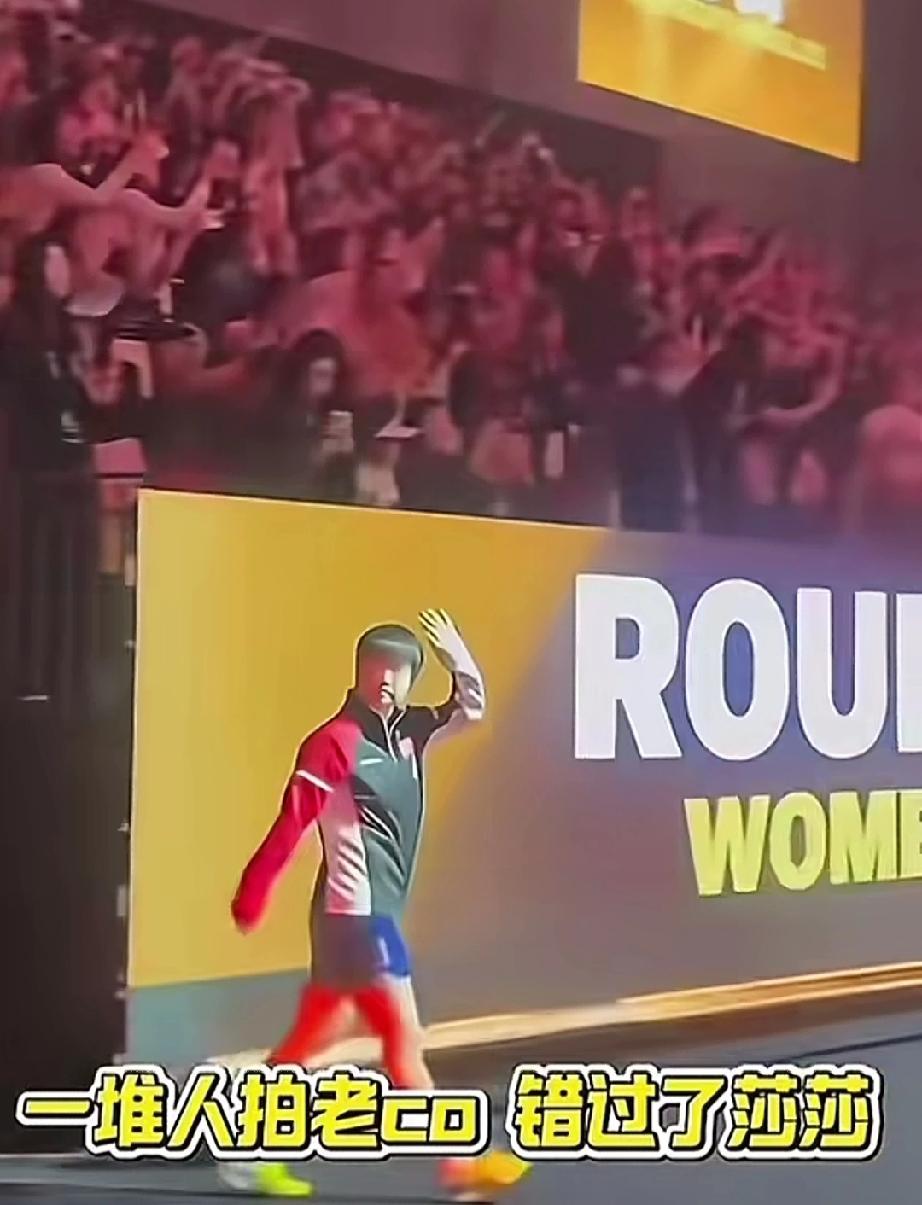另一侧莎莎大步出来,粉丝的手机还没转过来,莎莎已经走向台中央了。