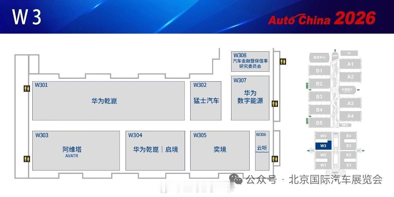 2026北京车展重磅出炉!2026北京国际汽车展览会展位分布图↓