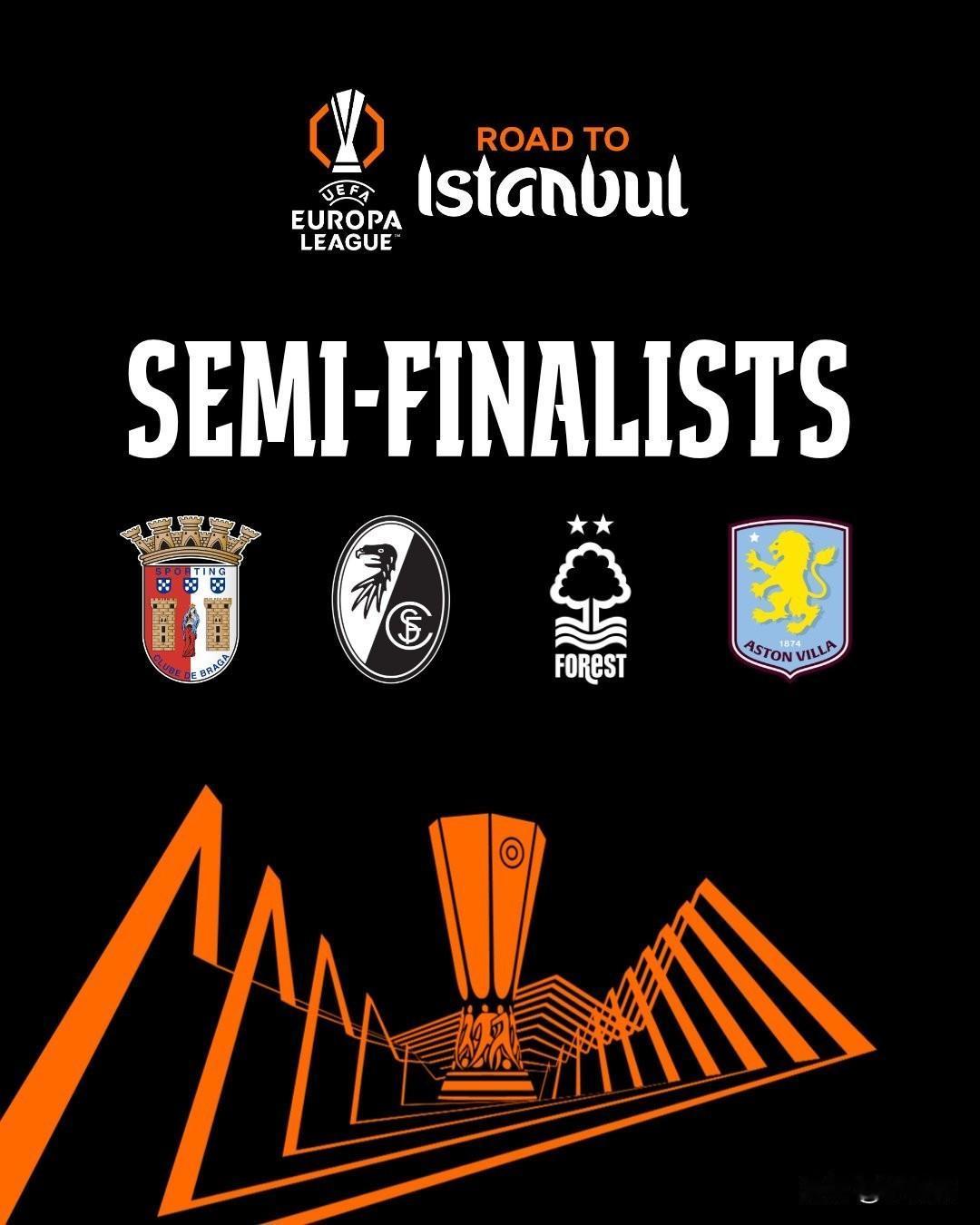 本赛季欧战三级赛事四强共12支球队,英超占据4席,刚好占比三分之一,展现出极强的