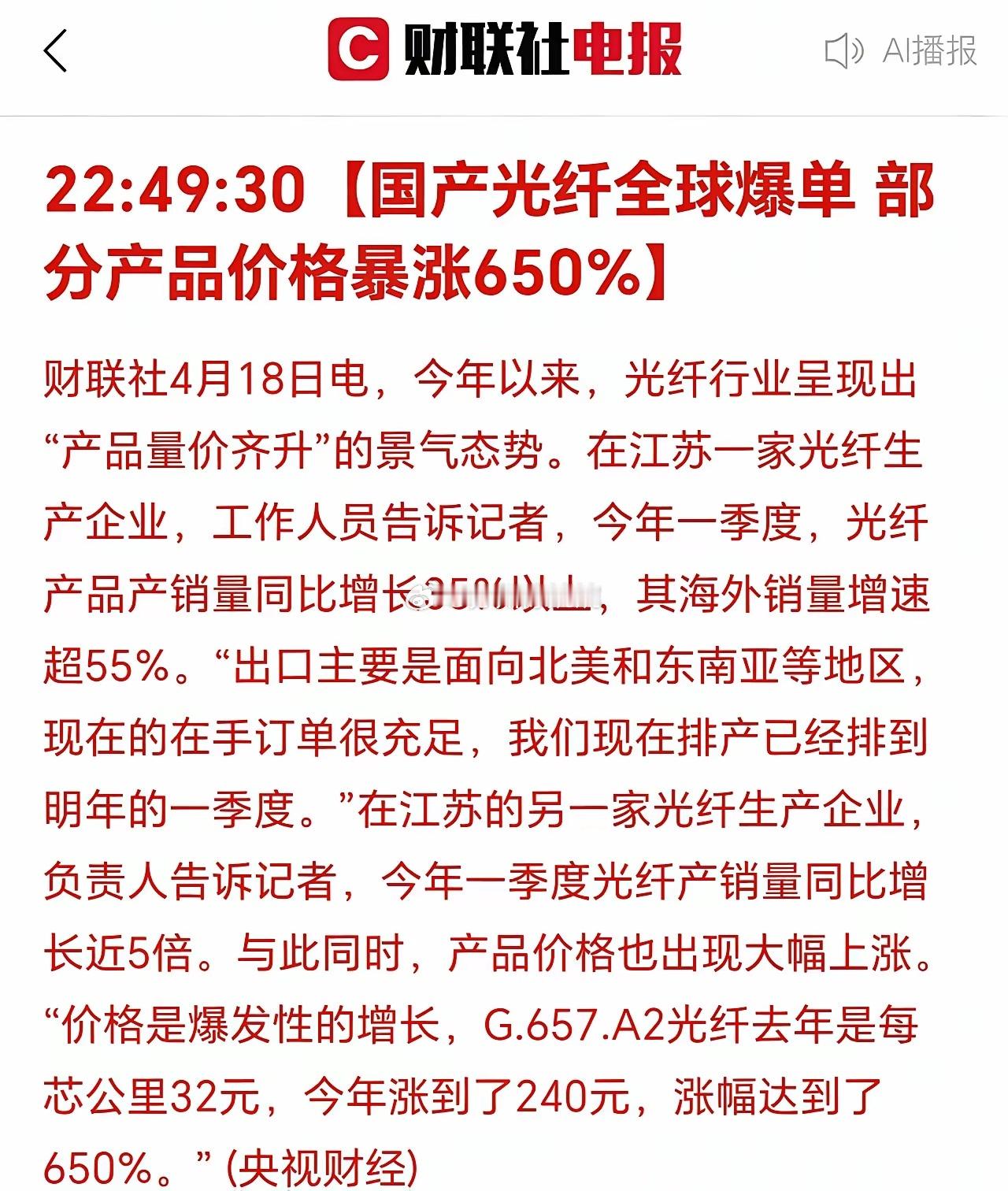 大清早看盘群里炸锅了,光纤全球爆单,价格直接飙了650%!都在传长飞要干到398