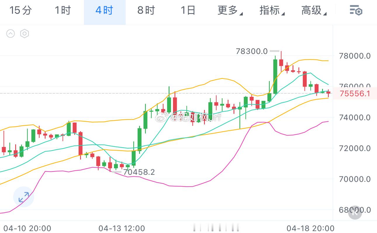 行情一路阴跌,从78500附近提示空下来76200附近转多,昨日一路阴跌7740