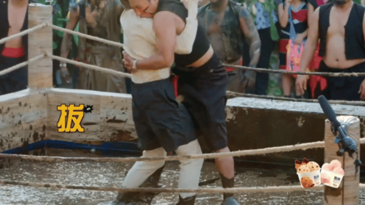 鹿晗泥潭摔跤被秒杀鹿晗摔跤秒被KO 陈赫站在旁边还没进入观战状态,鹿晗已经被KO