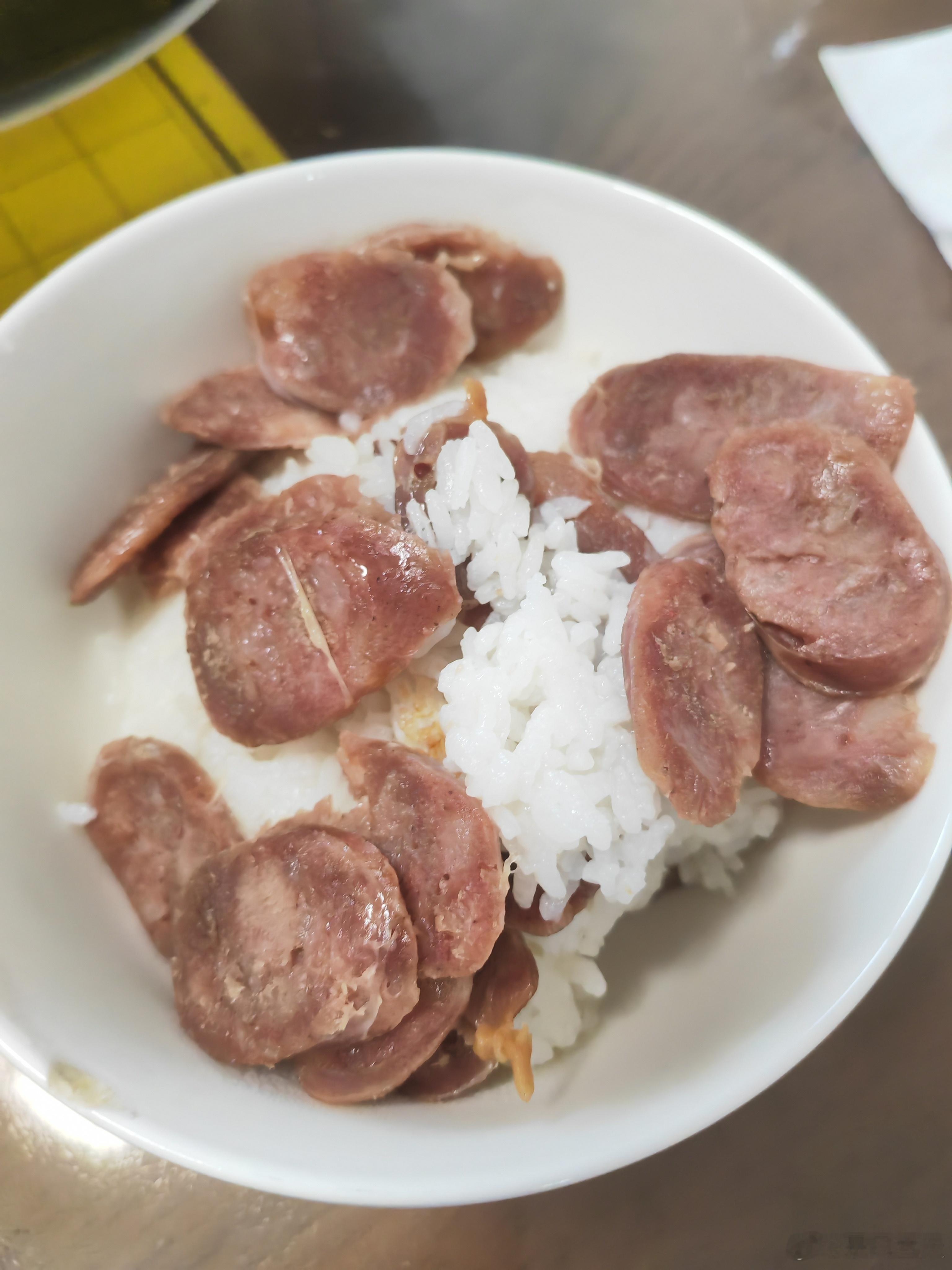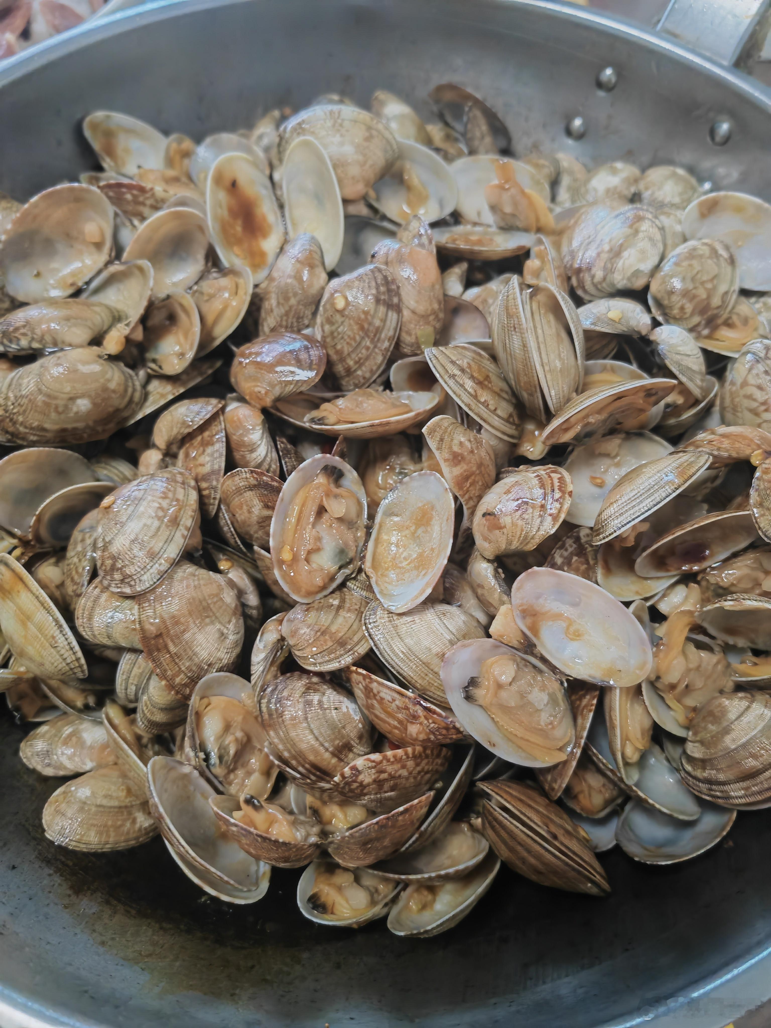 中午腊肠饭,辣炒花蛤,清炒绿化带,凉拌笋丝。