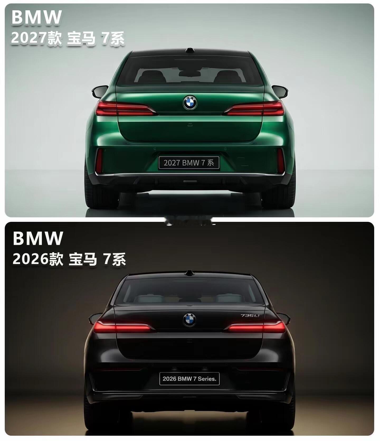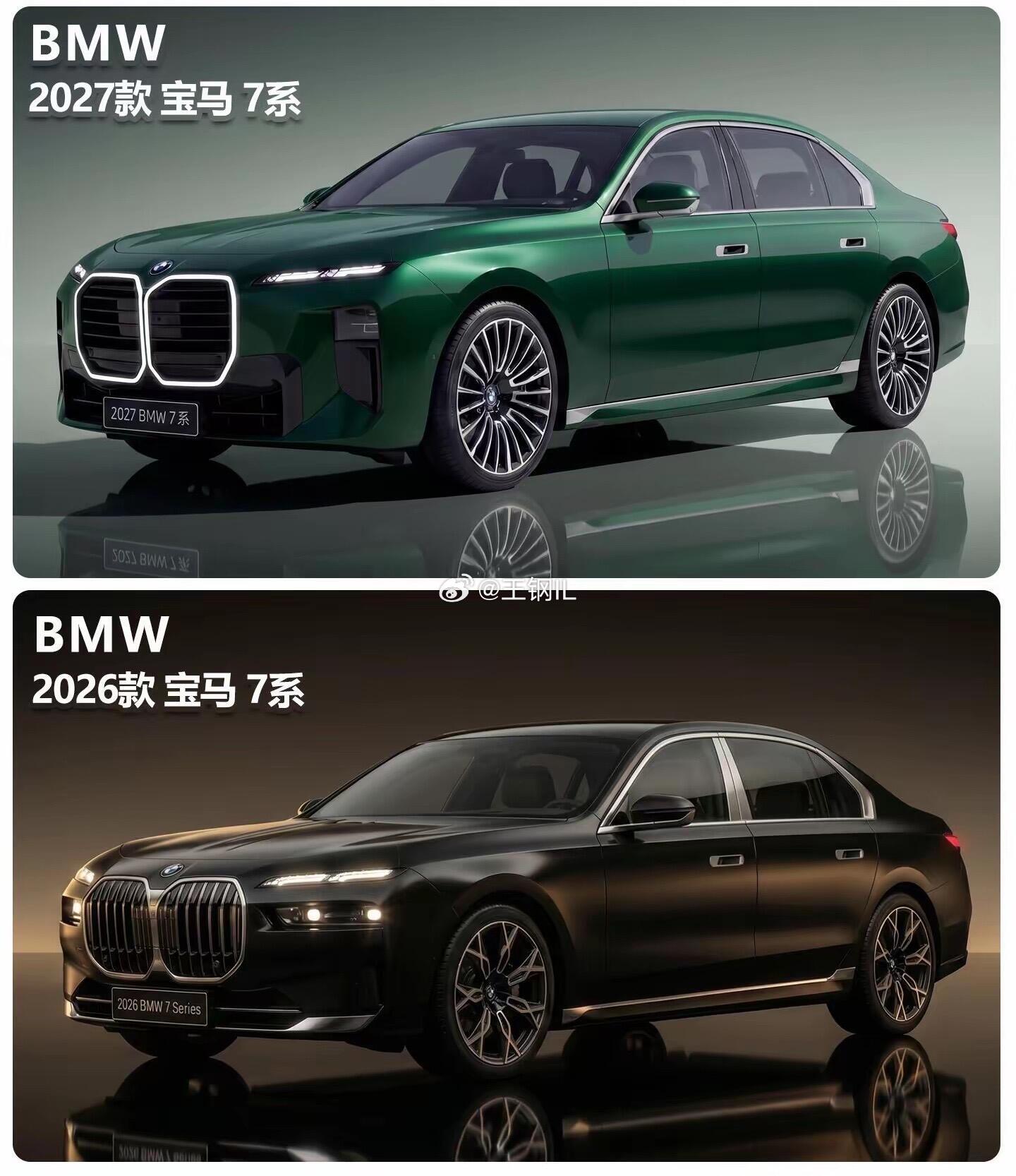 2027款宝马7系和现款版本对比图,前脸设计部分由竖向进气格栅变成了横向布局!而