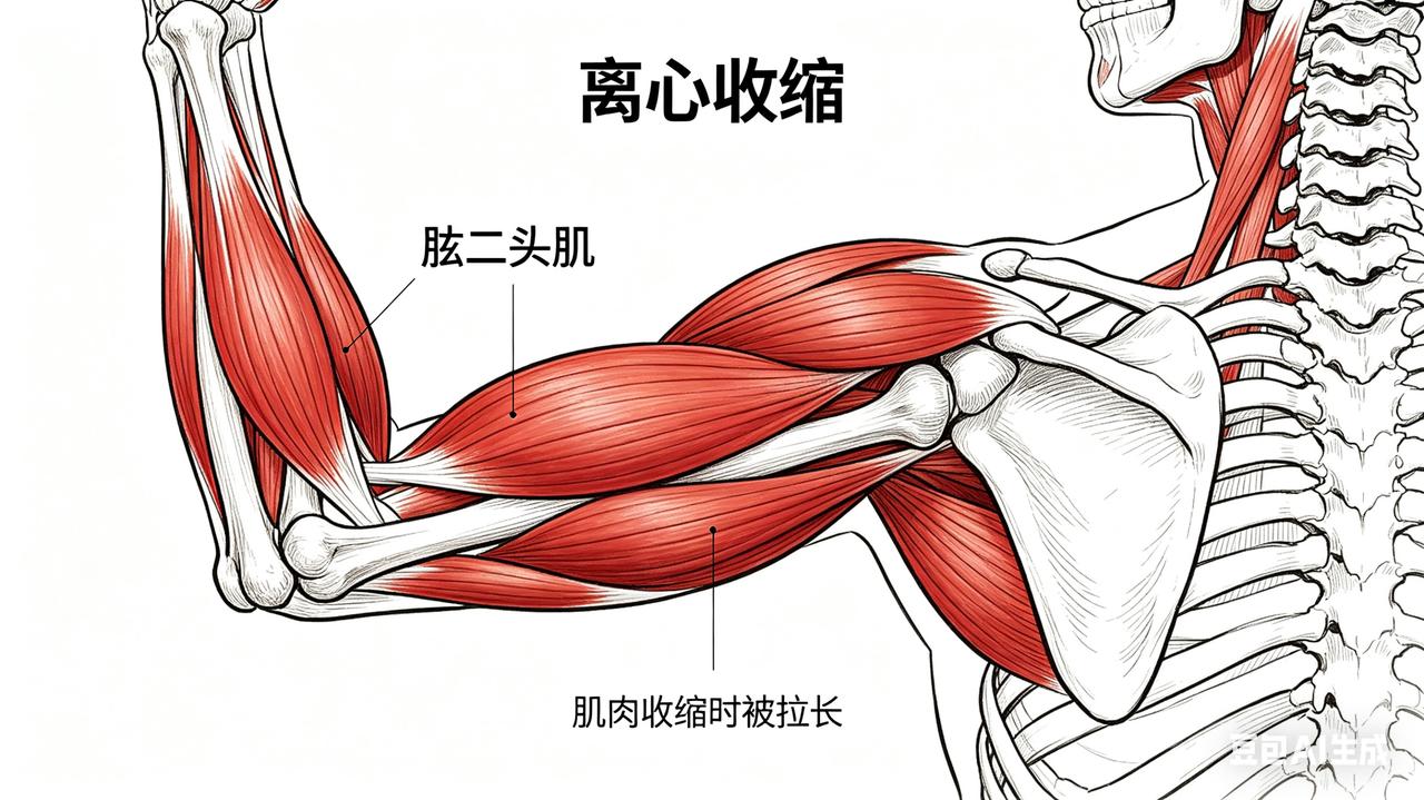和向心相反,肌肉在阻力下缓慢伸长。放下哑铃时,二头从收紧状态慢慢被拉开,这个过程对肌肉破坏和生长更关键,很多人忽略它,练再久也难长肌肉。
