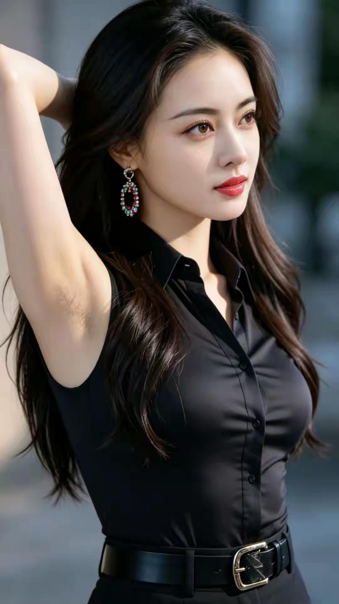 都市女郎风,黑色衬衫搭配大耳环,自信满满🍎🌺🌴