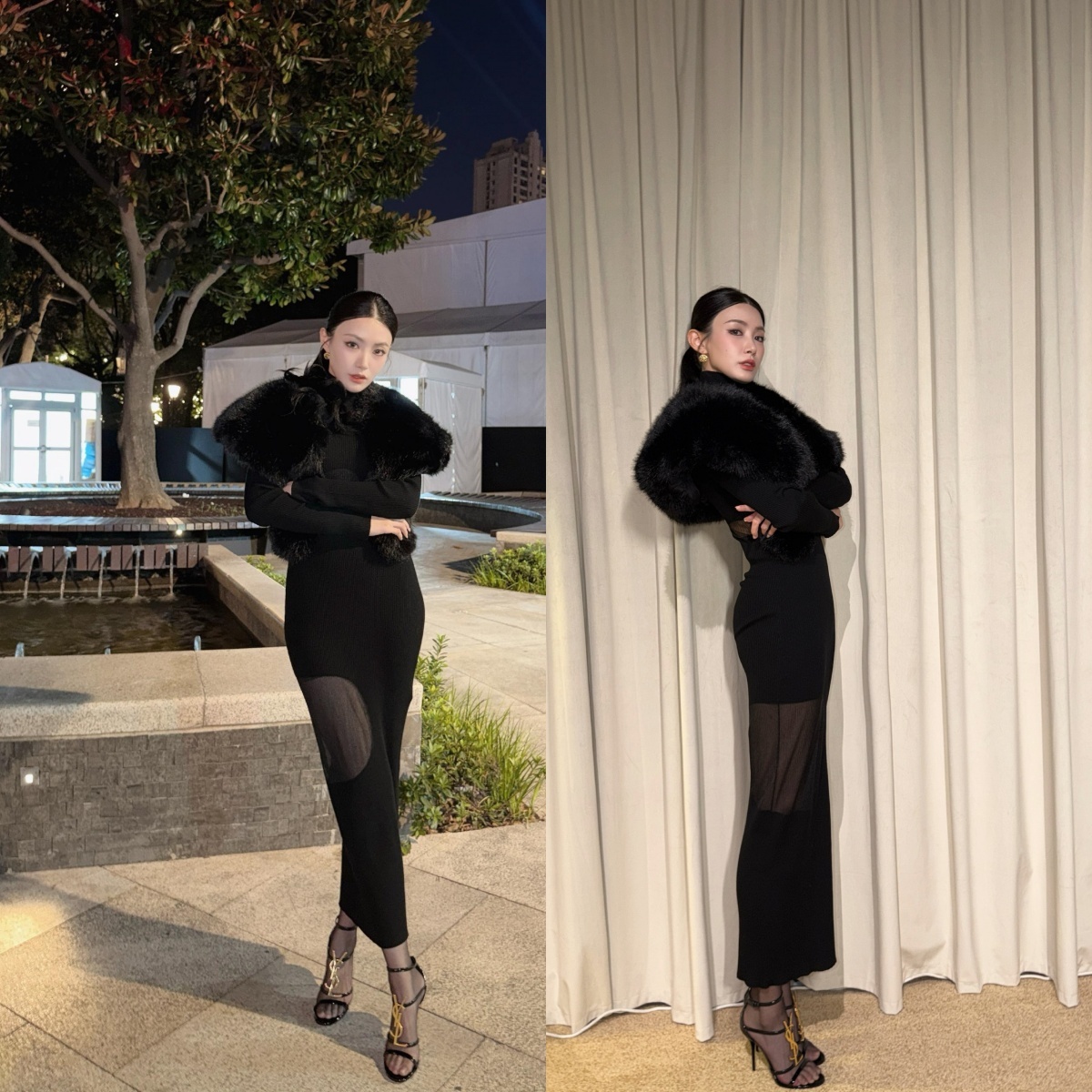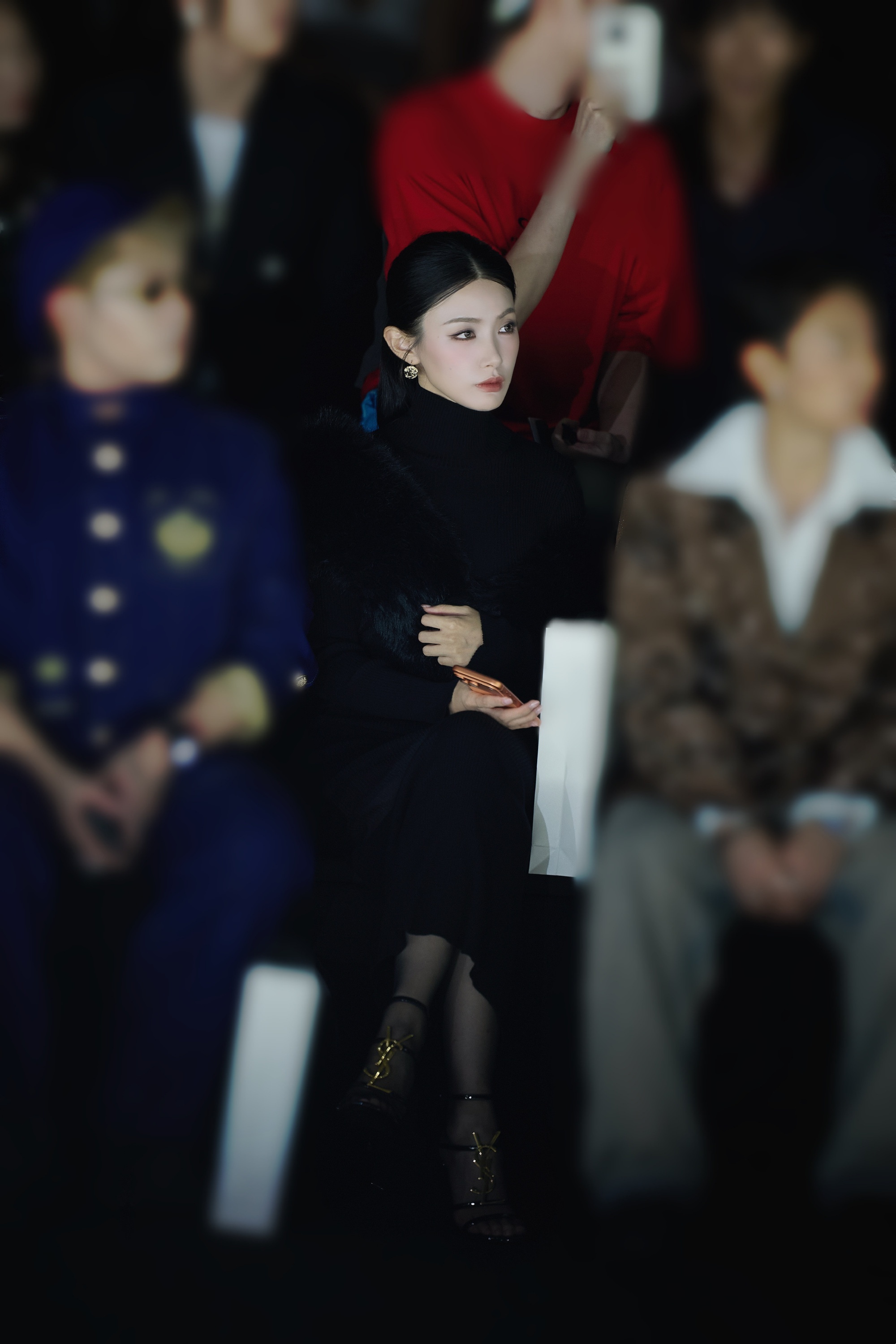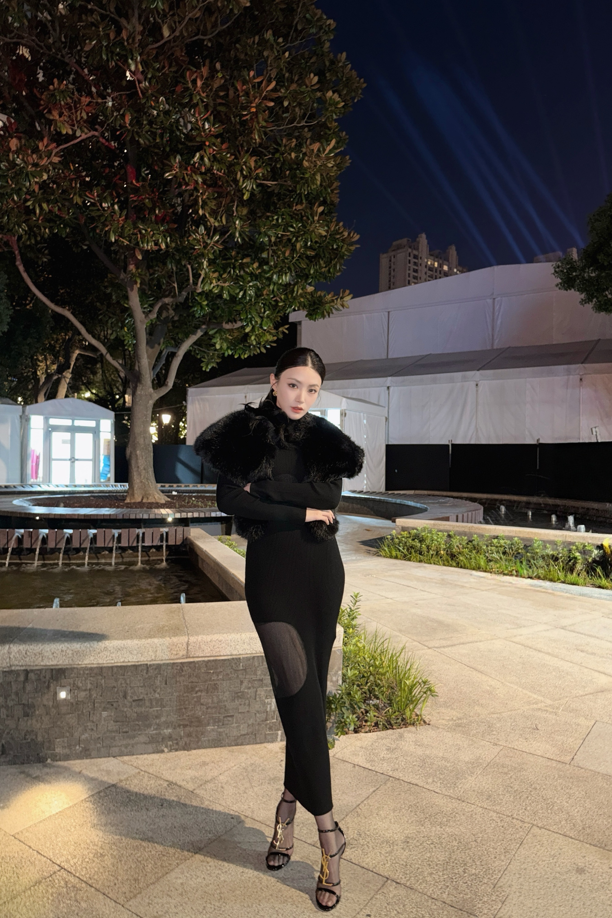 戴萌上海时装周看秀,黑色裙装,丝袜妆造好美。戴萌