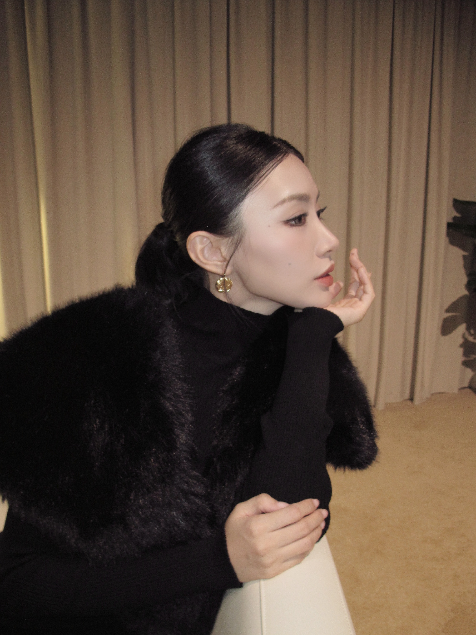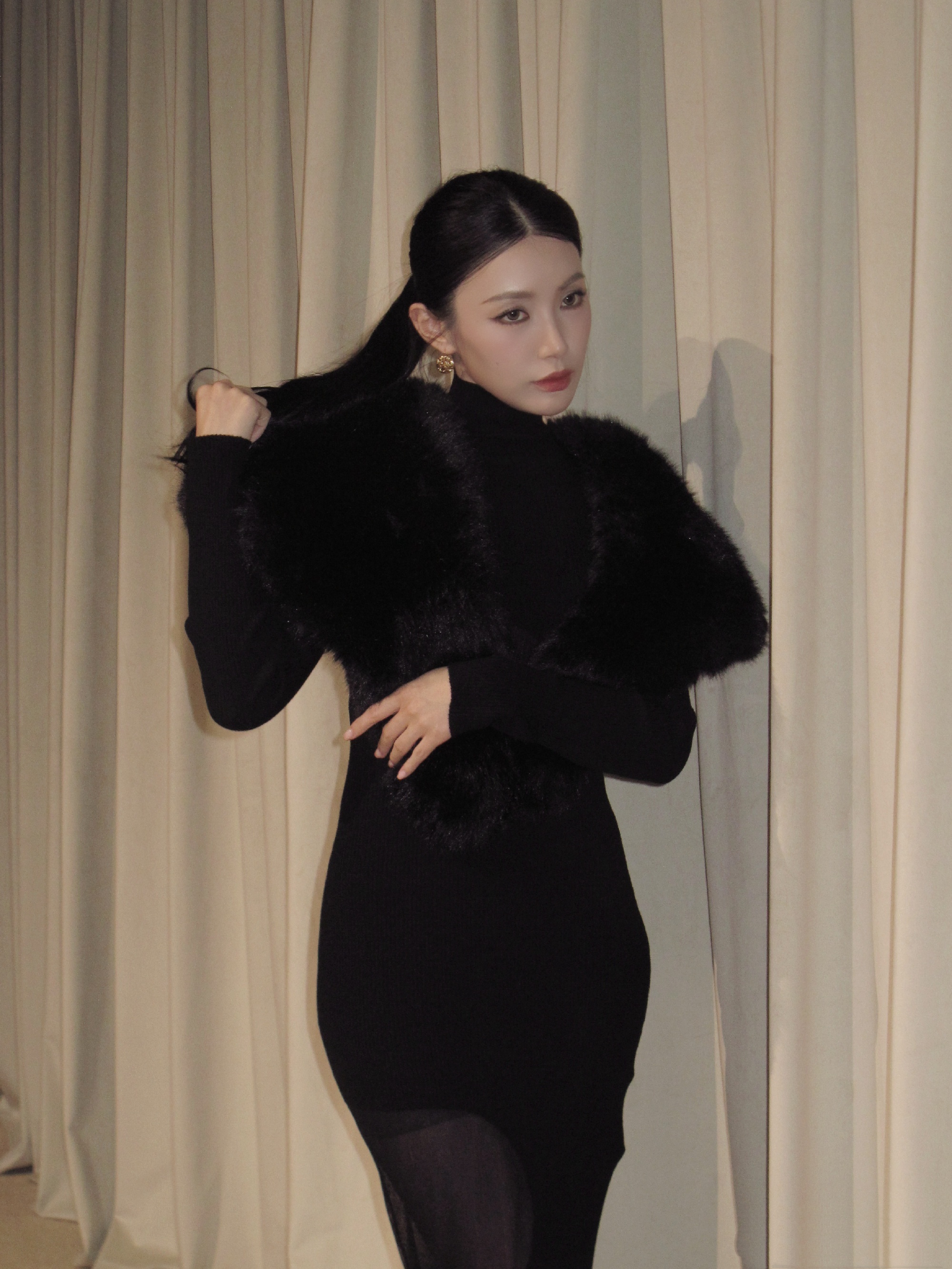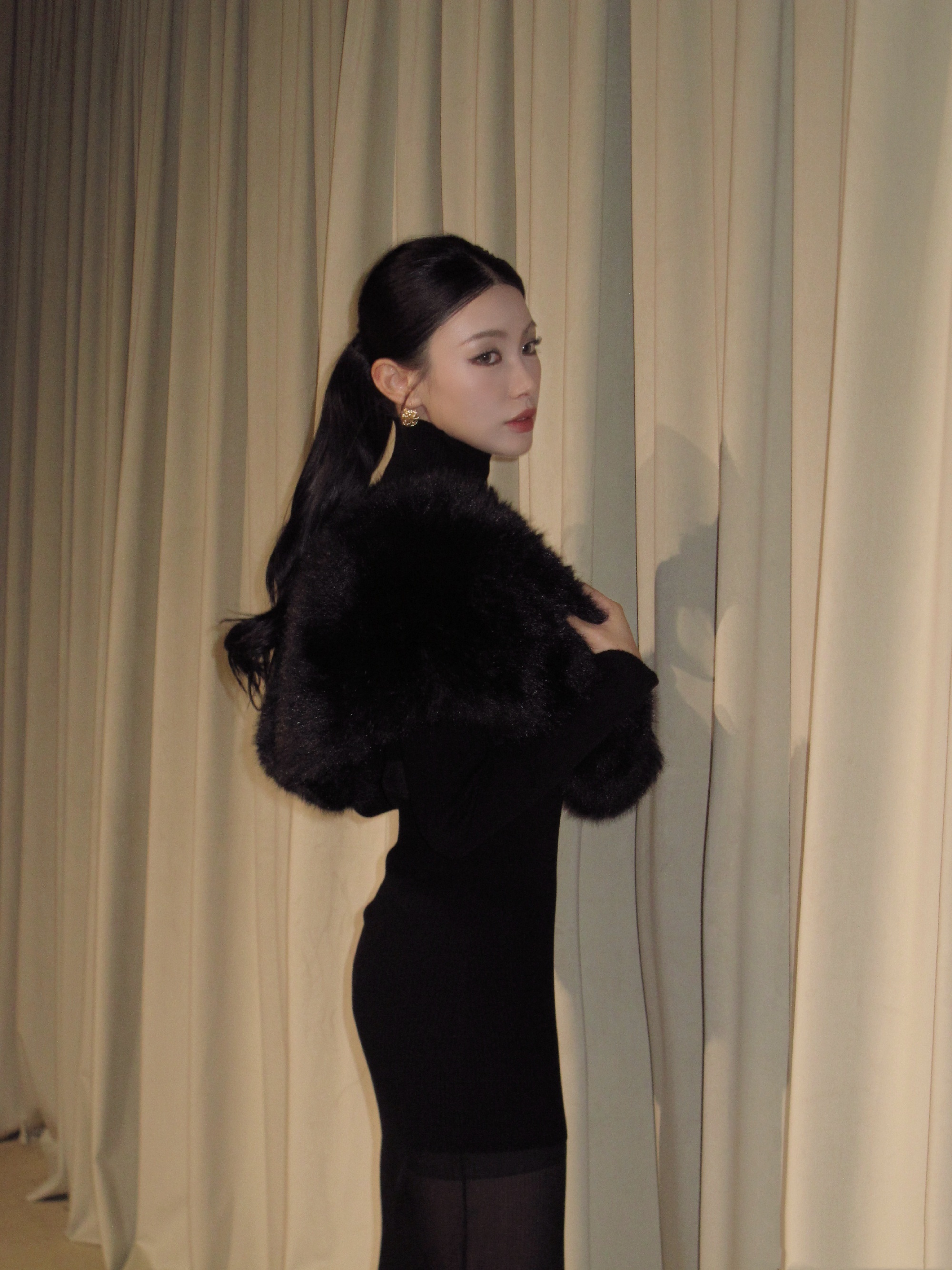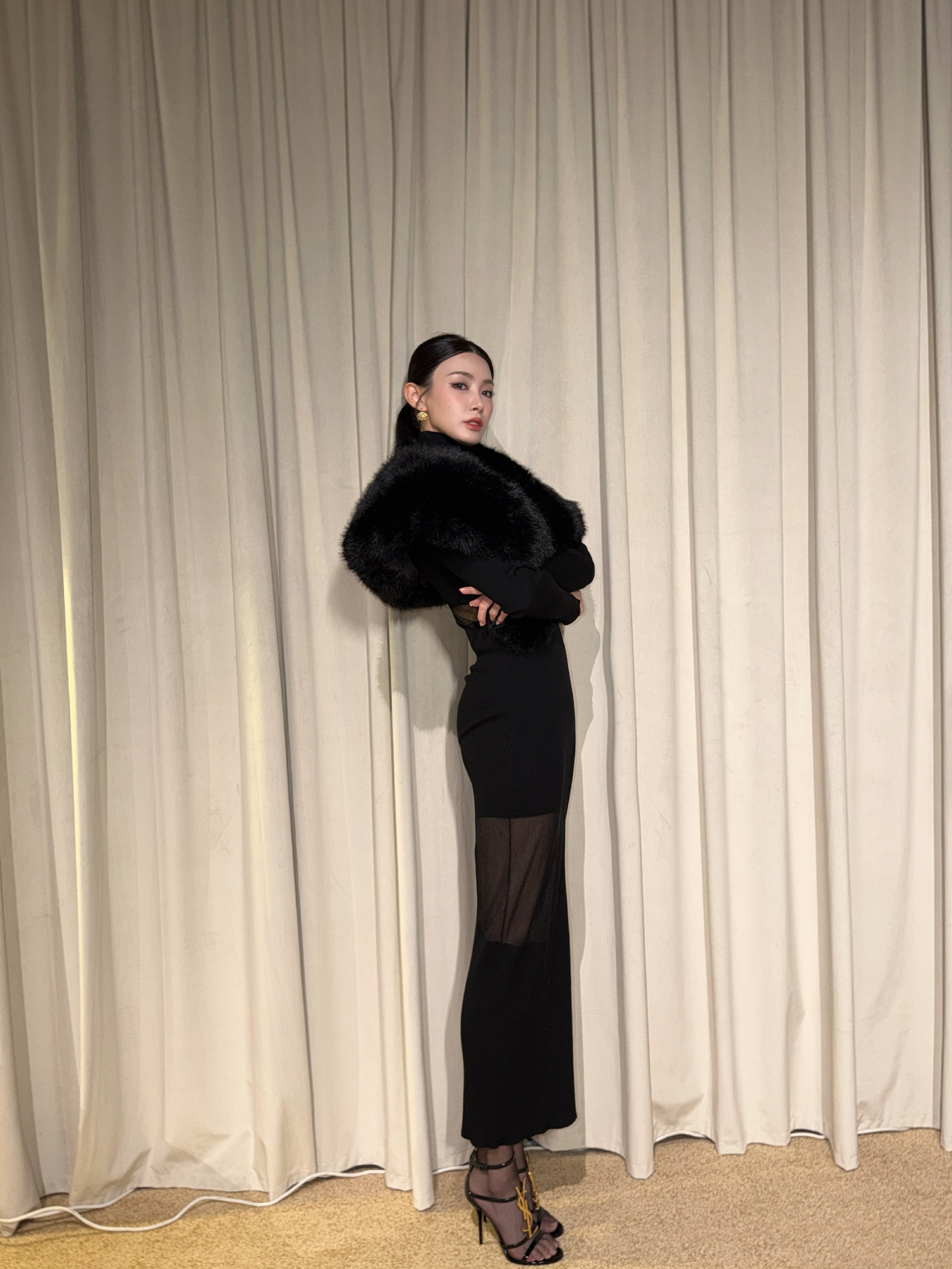 戴萌上海时装周看秀,黑色裙装,丝袜妆造好美。戴萌