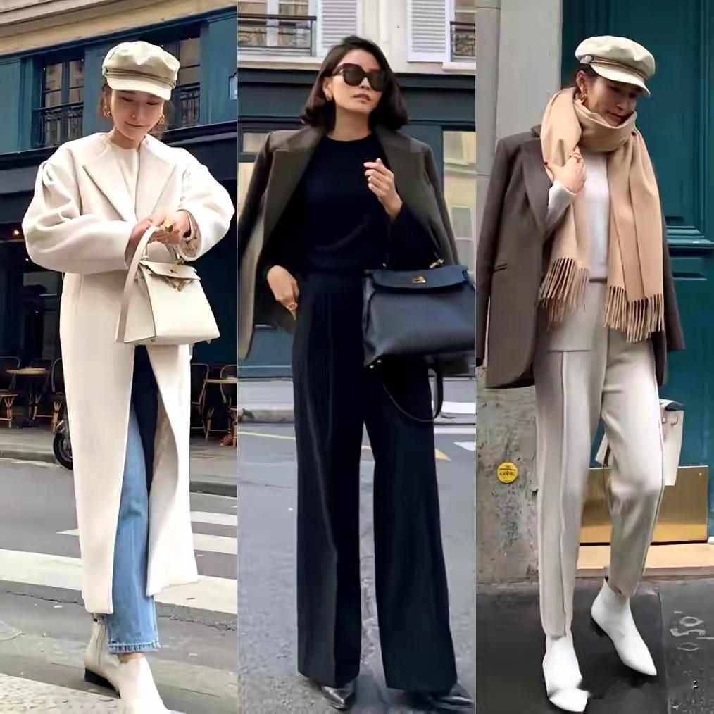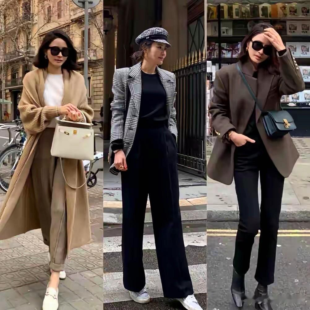 回头率超高的时髦老钱风!这组大地色系穿搭太绝了,浅咖针织Polo衫搭配藏青阔腿