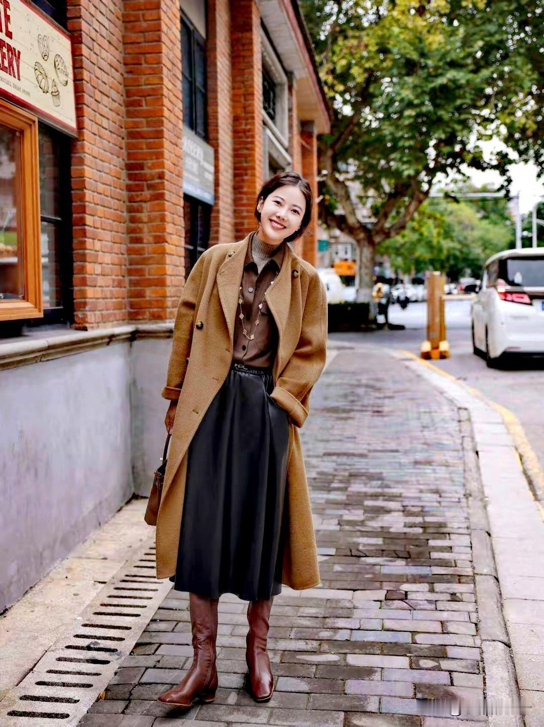 优雅白衬衫搭配米色短裙,简约时尚,气质满分!👗👠