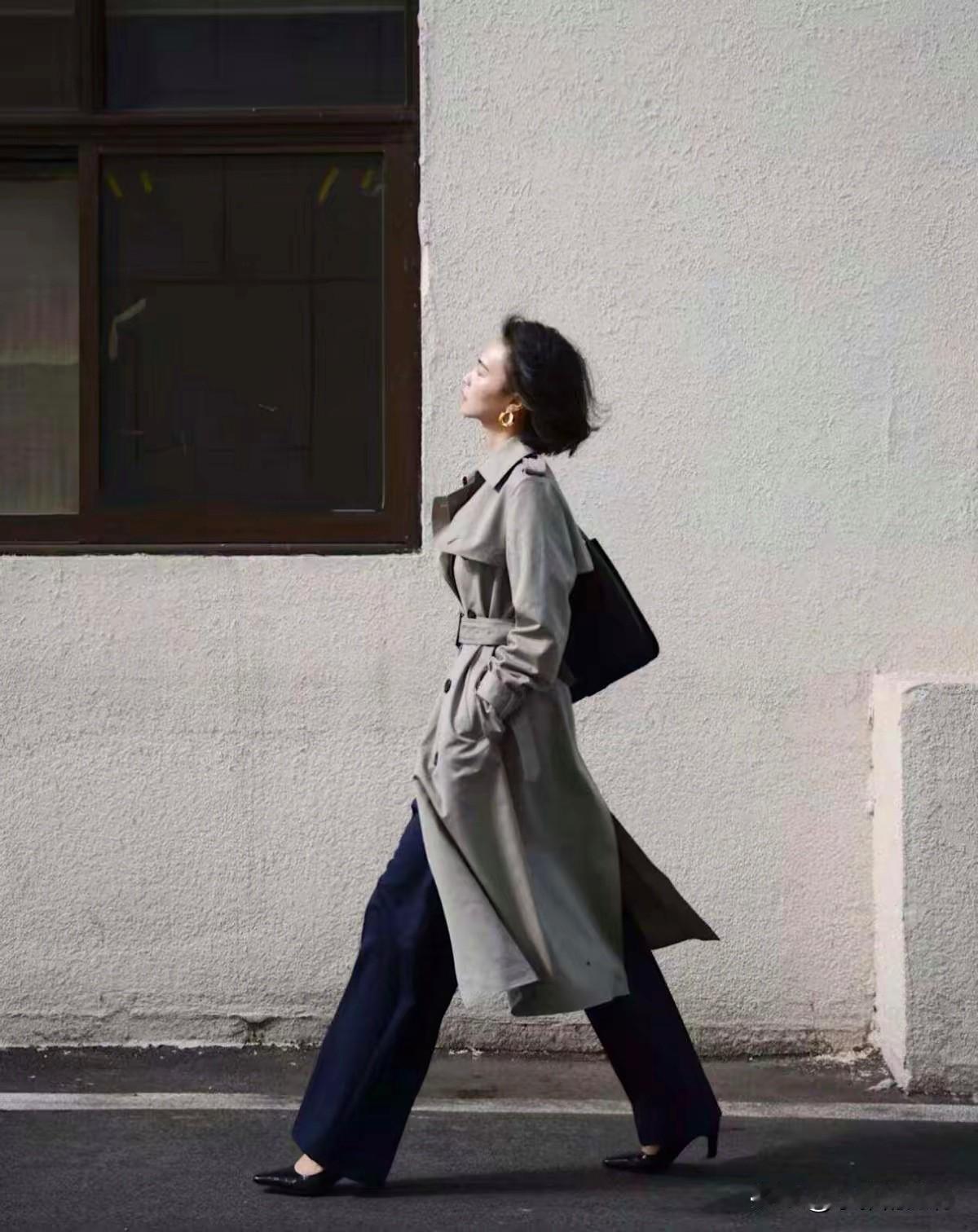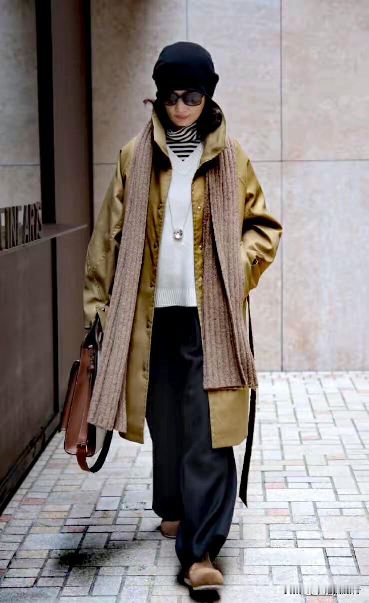 回头率超高的时髦老钱风!这组大地色系穿搭太绝了,浅咖针织Polo衫搭配藏青阔腿