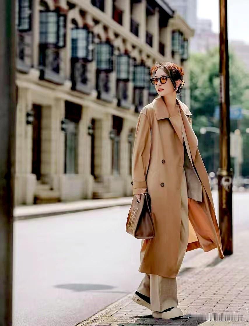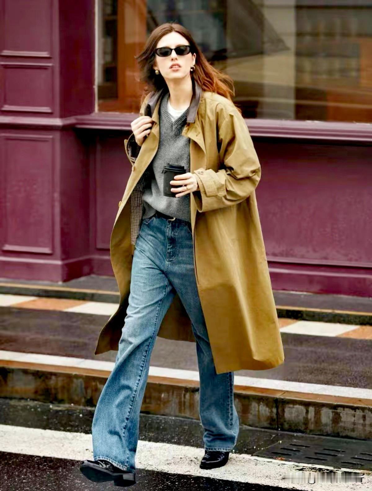 牛仔夹克+阔腿裤,又酷又飒,宋佳的松弛感穿搭真的绝了!叠穿针织开衫,细节感