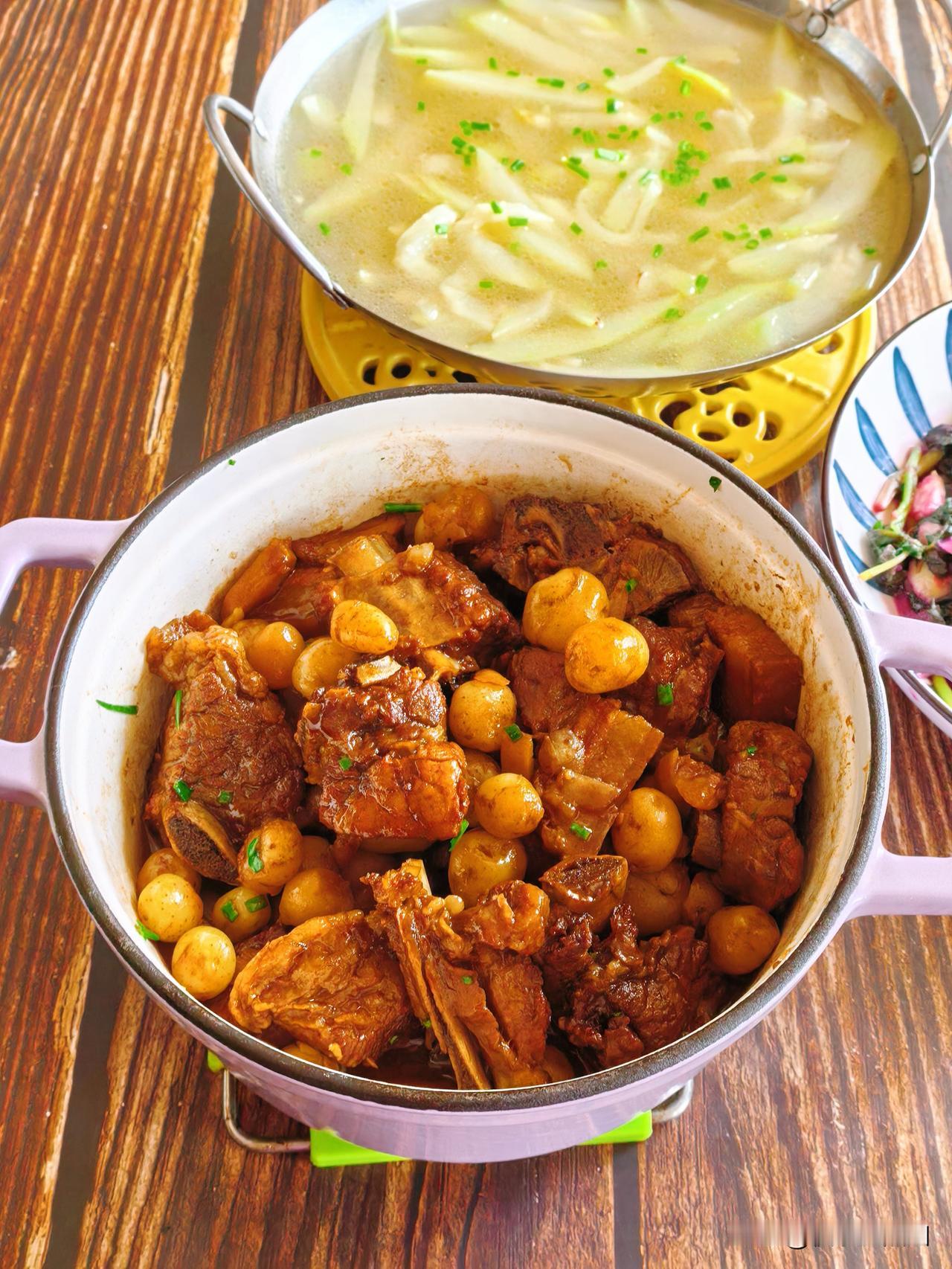 今天又买了小马铃薯 ,抓紧吃,很快就长大了。跟排骨一块烧,这道菜的灵魂就是两块咸腊肉,让马铃薯烧排骨的汤汁咸香直接翻倍