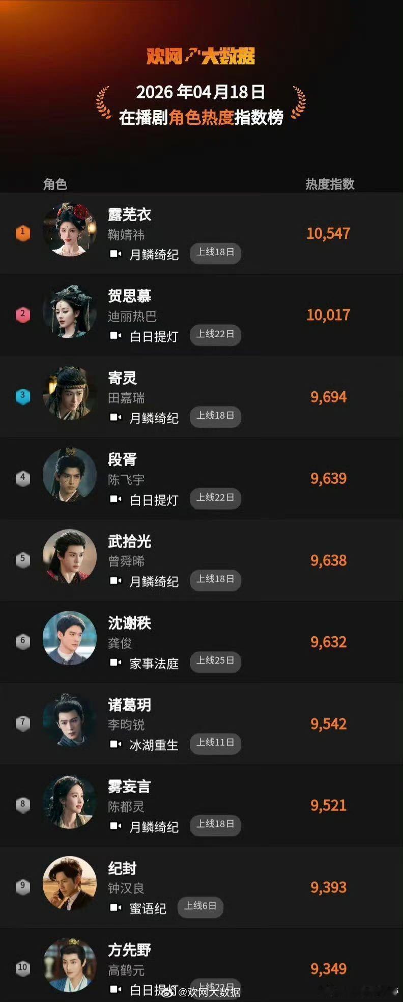 鞠婧祎露芜衣又双叒TOP1 鞠姐拿成绩的速度真的比我翻书还快,露芜衣先是成了优酷首个热度破2亿的角色,接着又是各个榜单连续十几天TOP1,口碑还一路上扬,这种热度演技双丰收的局面,真的是靠她自己一点点拼出来的。